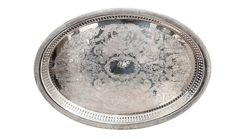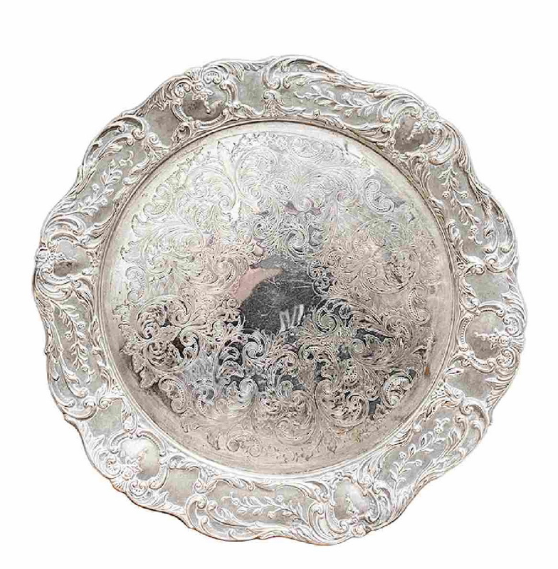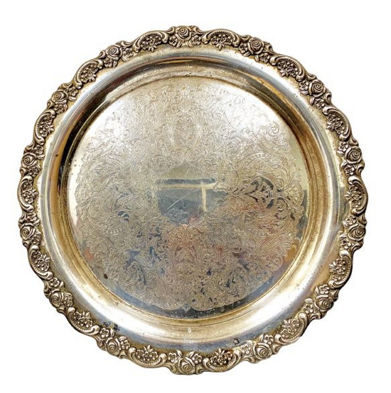 12 欧洲镀银刻花纹案雕花工艺托盘(直径:38cm)