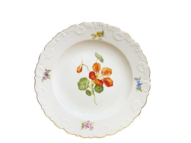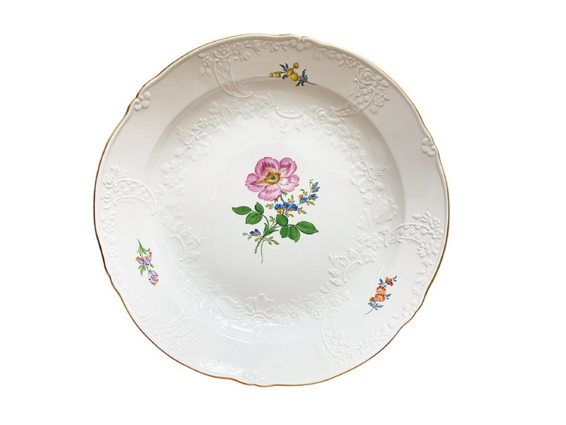 13 德国梅森(东德时期)彩绘德国之花浅浮雕描金特大果盆(直径:35.8cm)
