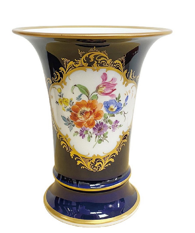 14 德国梅森手绘德国之花钴蓝描金花瓶(H:13.5cm)