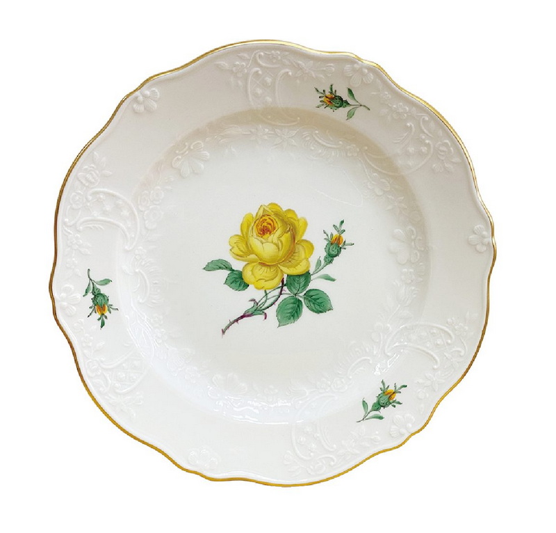 16 德国梅森手绘黄玫瑰描金点心盘(直径:18.5cm)