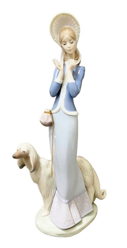 6 西班牙雅致"贵妇与她的爱犬"人物瓷塑摆件(H:33.5cm)