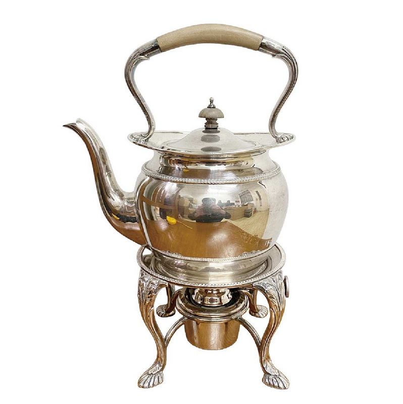 7 19世纪英国镀银提梁壶及酒精加热架(H:28cm)