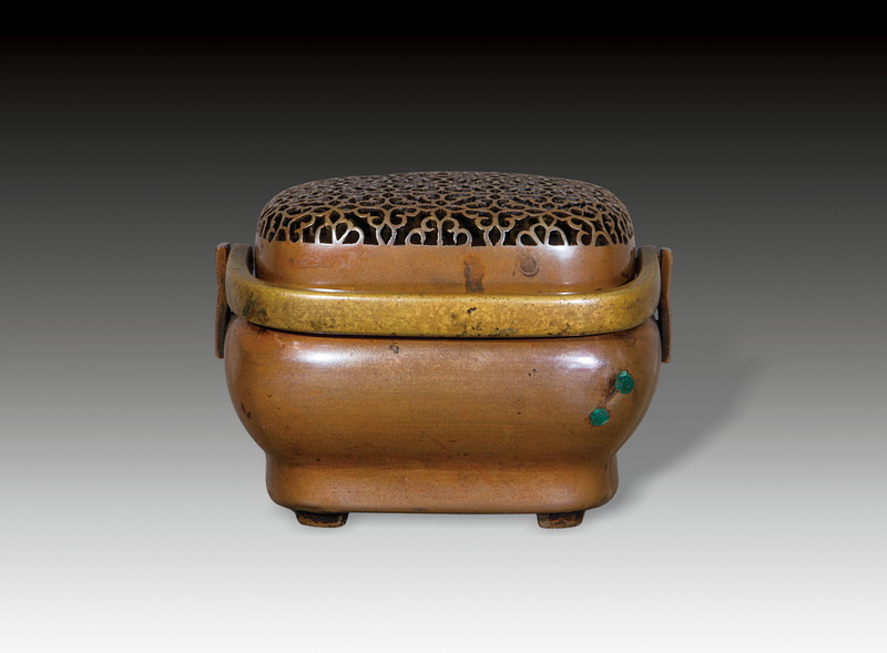 11 张鸣岐款万字纹倭角铜手炉 1件