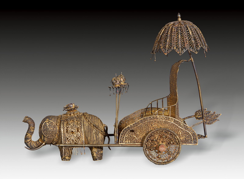14 清广州十三行出口银鎏金太平有象摆件 1件