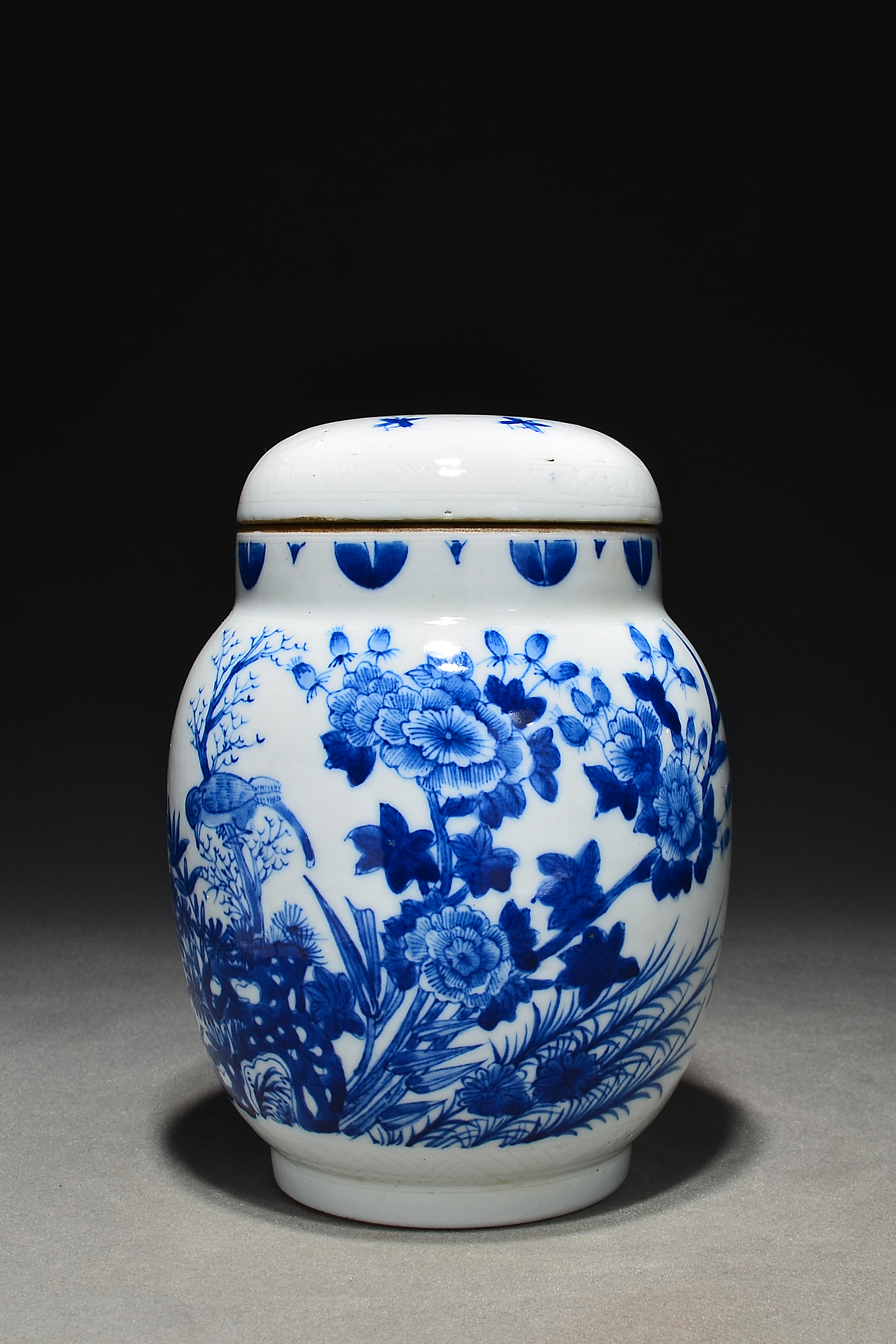 4542 青花花鸟图莲子罐