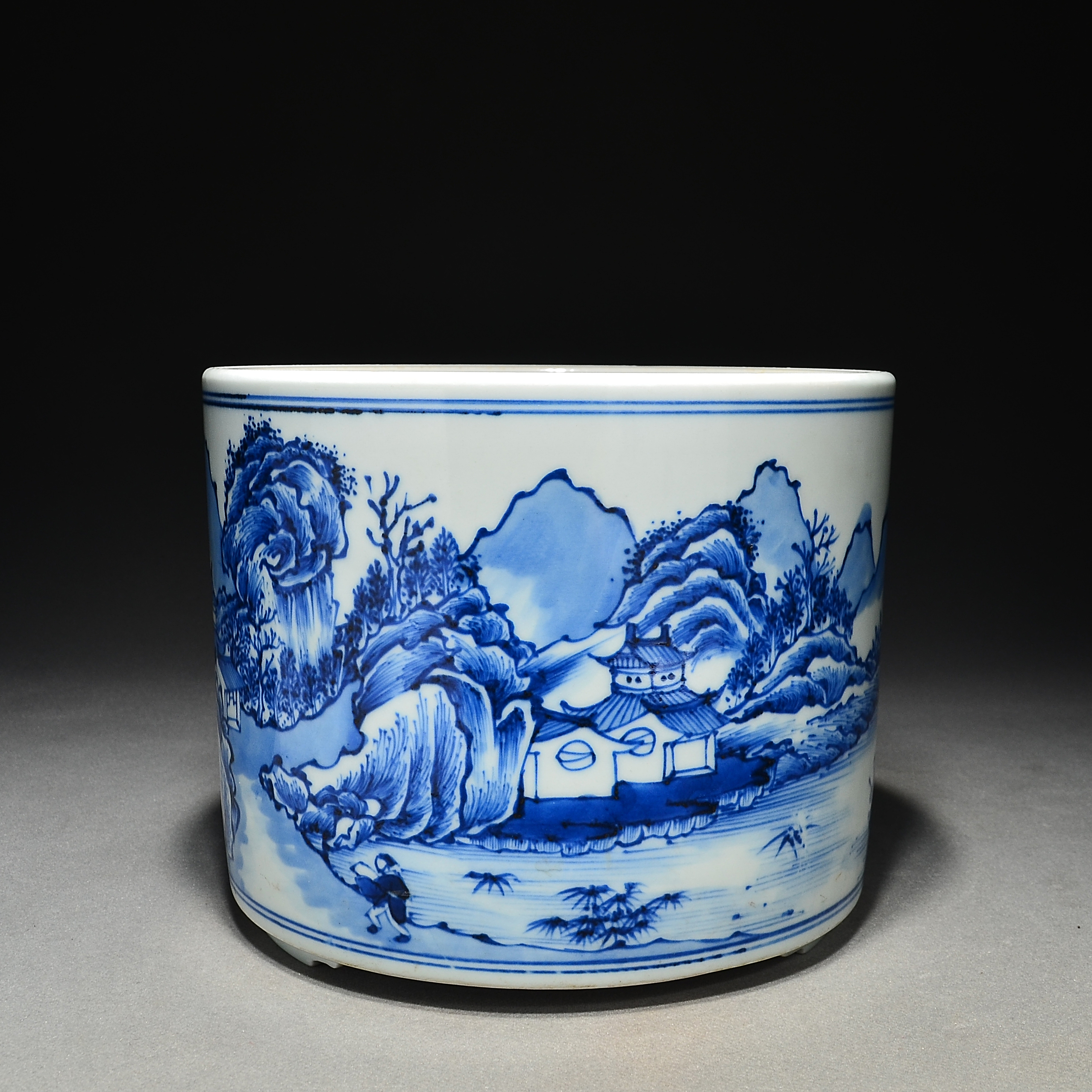 4543 青花通景山水人物笔筒
