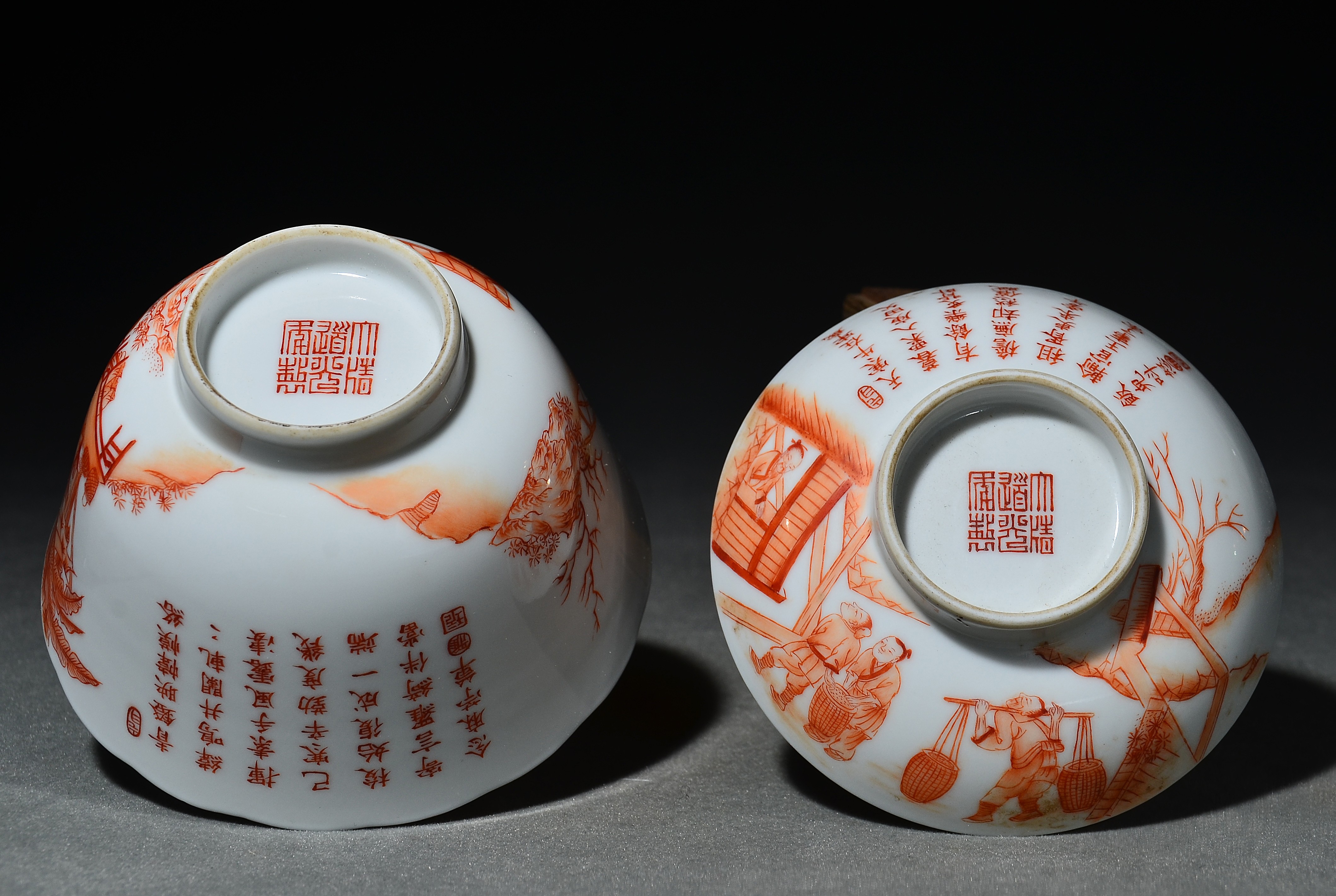 4544 钒红彩御题诗文耕织图盖碗
