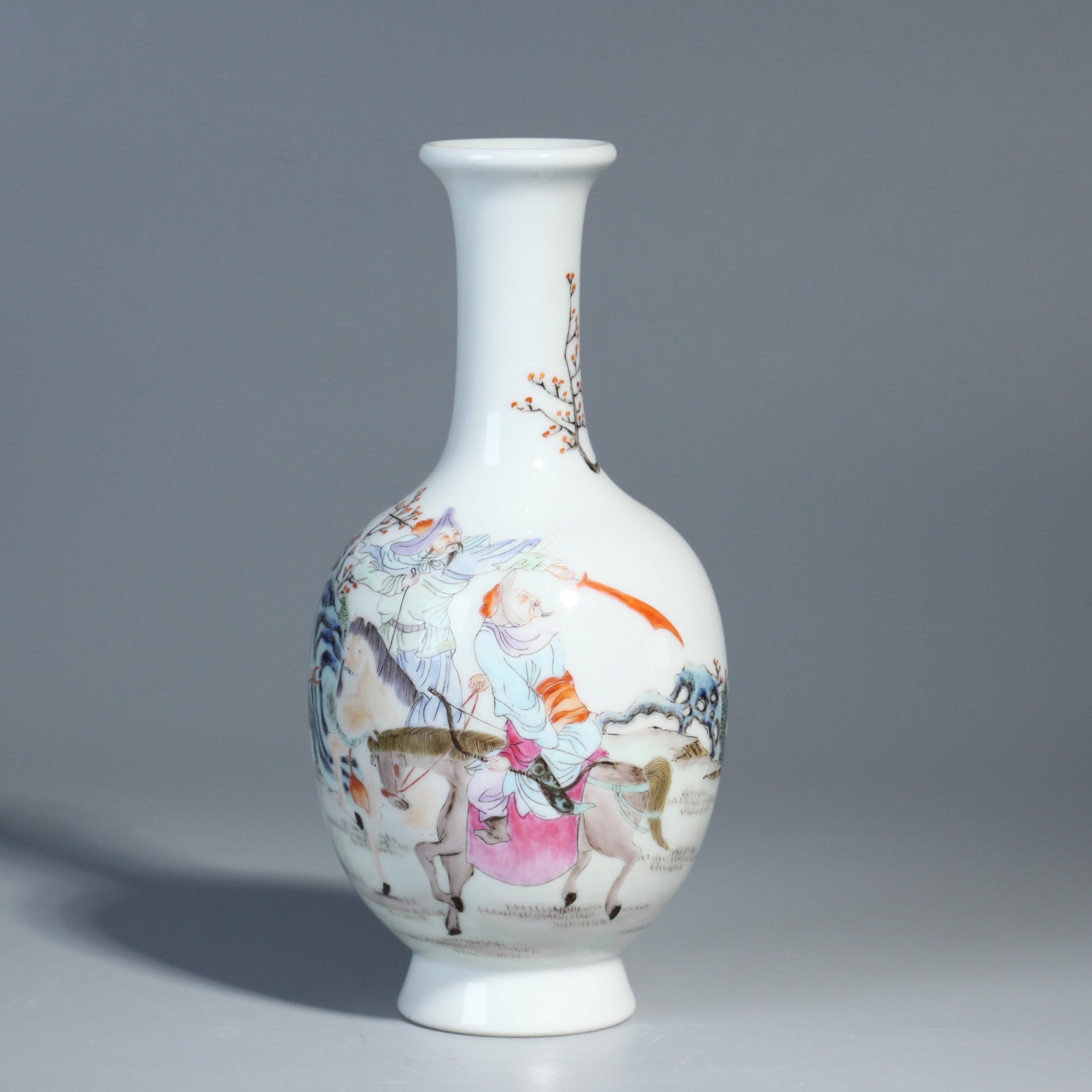 4556 粉彩狩猎图撇口瓶