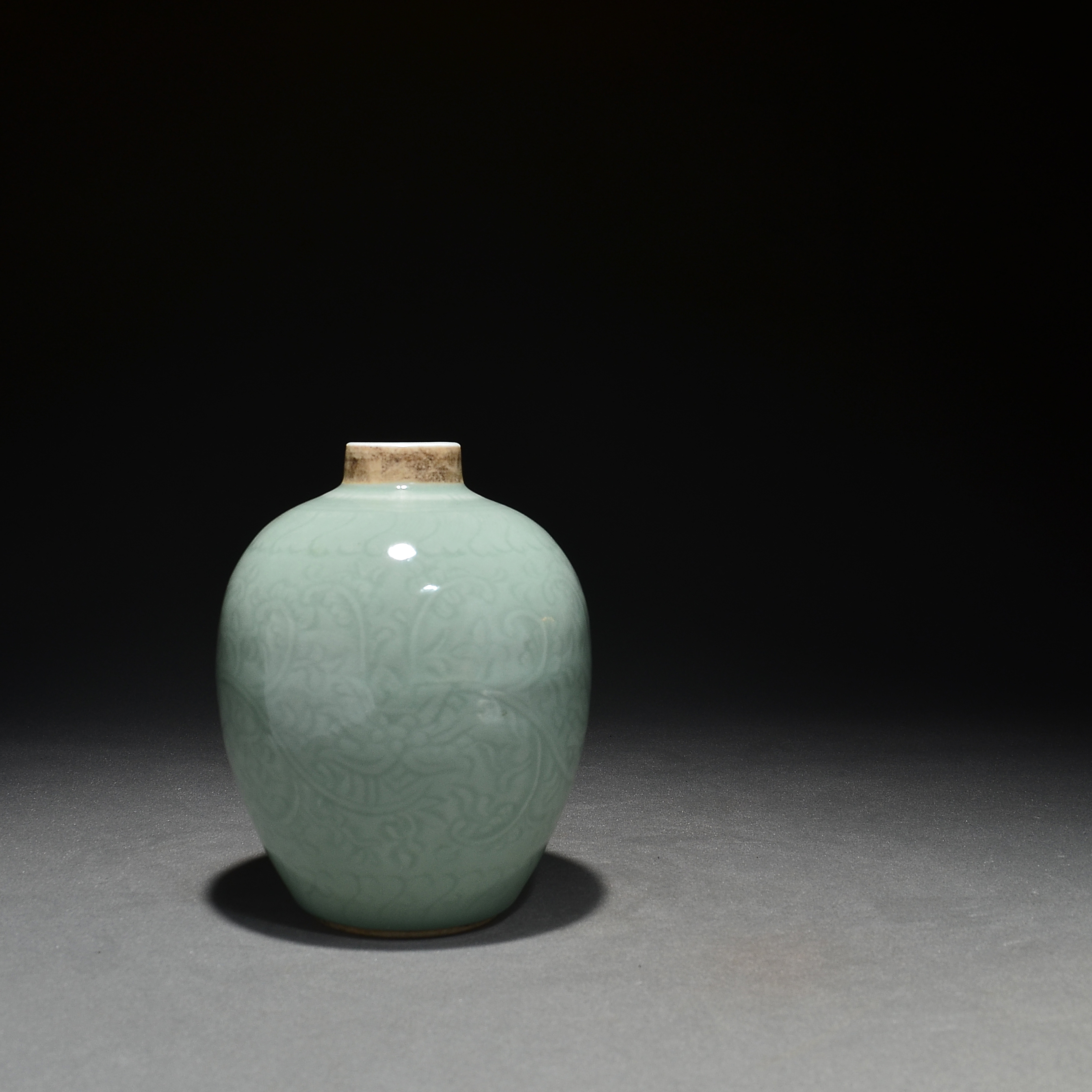 4621 粉青釉暗刻缠枝莲纹茶叶罐
