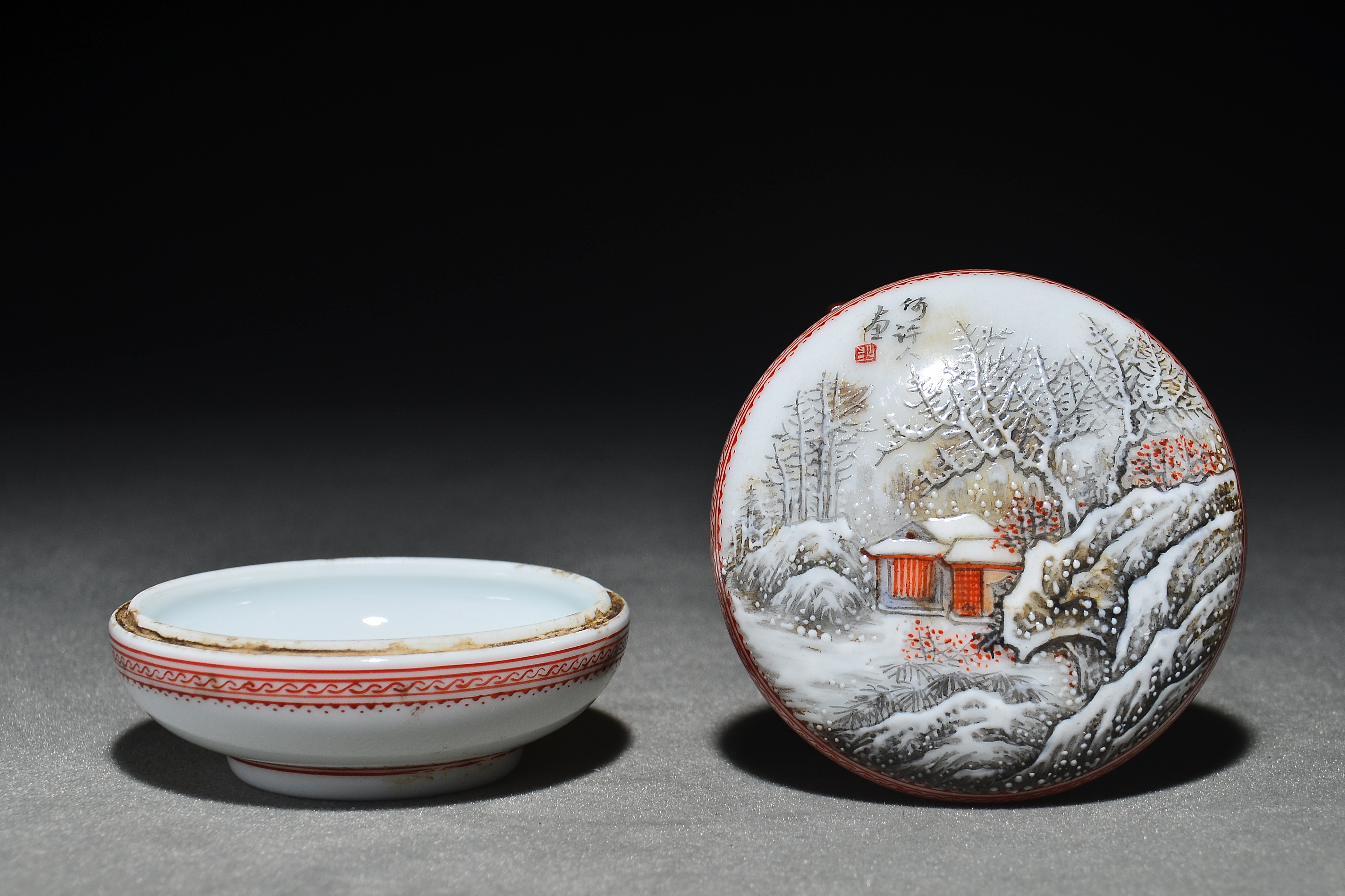 4627 何许人绘雪景图印泥盒