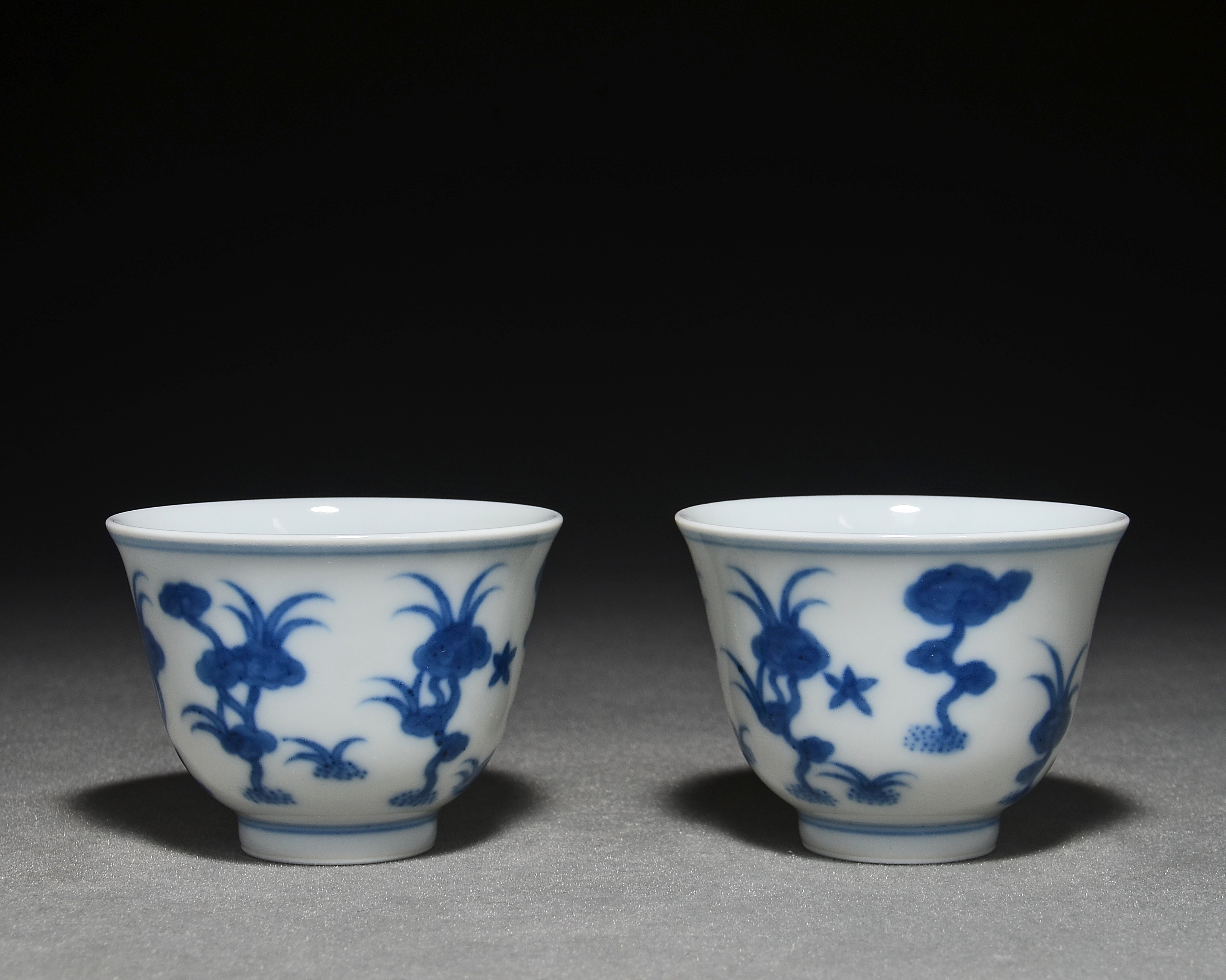 4631 青花灵芝纹茶杯一对