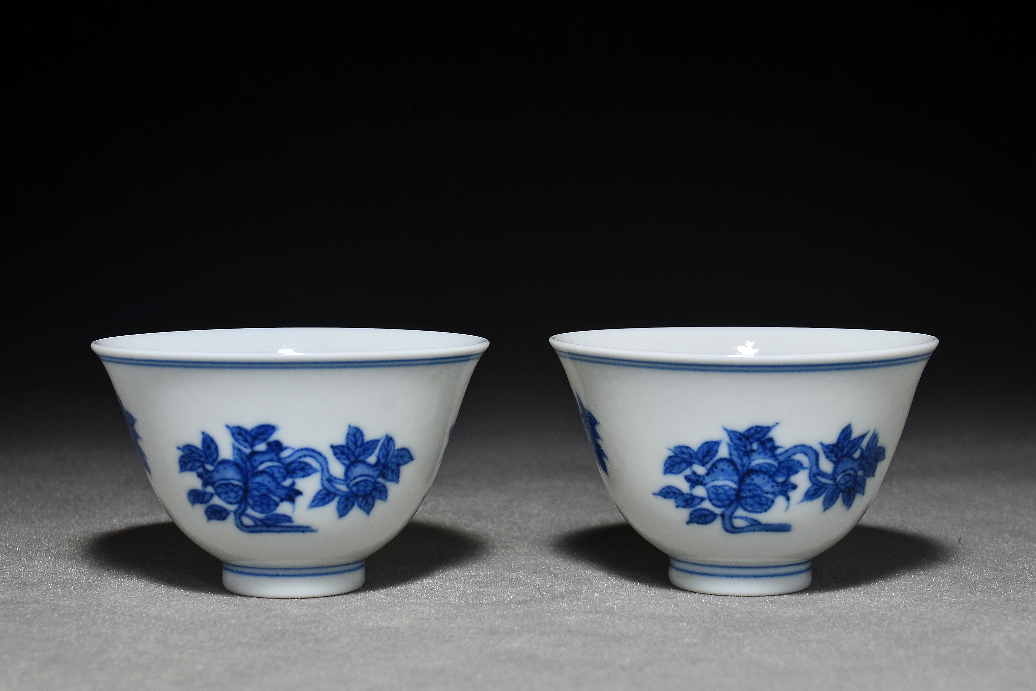 4633 青花折枝三多纹茶杯一对