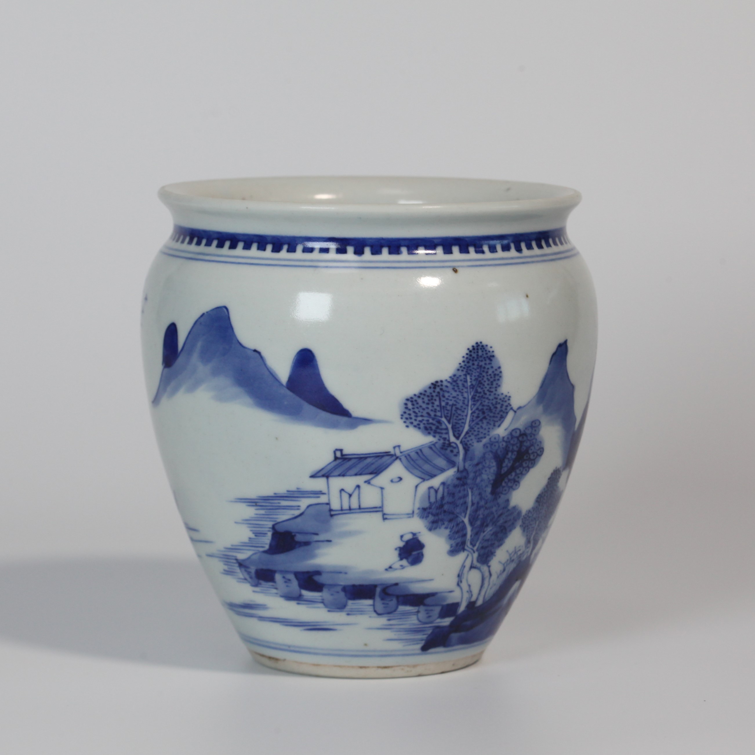 4638 青花山水图纹卷缸