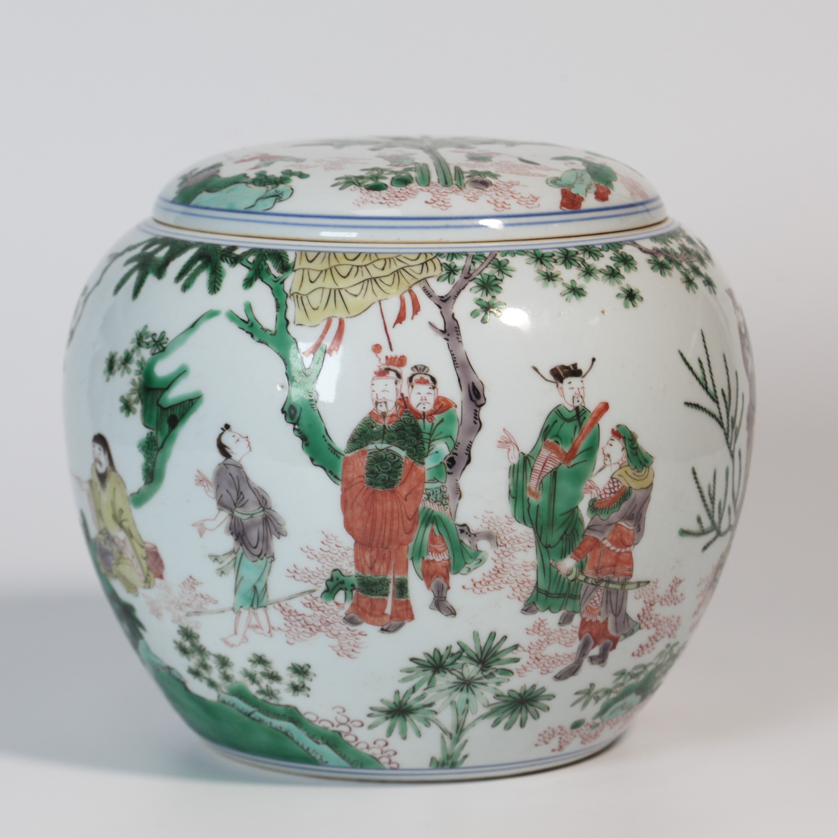 4640 五彩文王访贤图纹盖罐