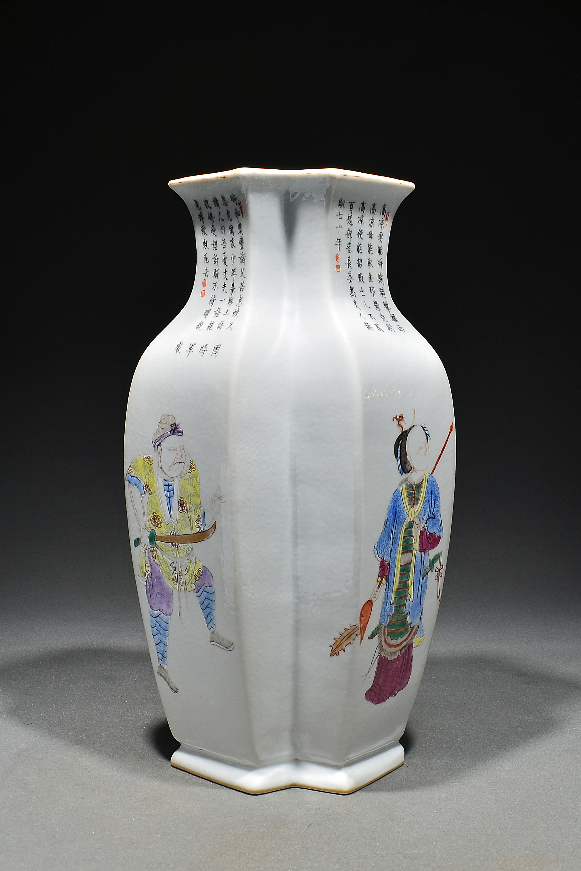 3223 粉彩无双谱人物双联瓶