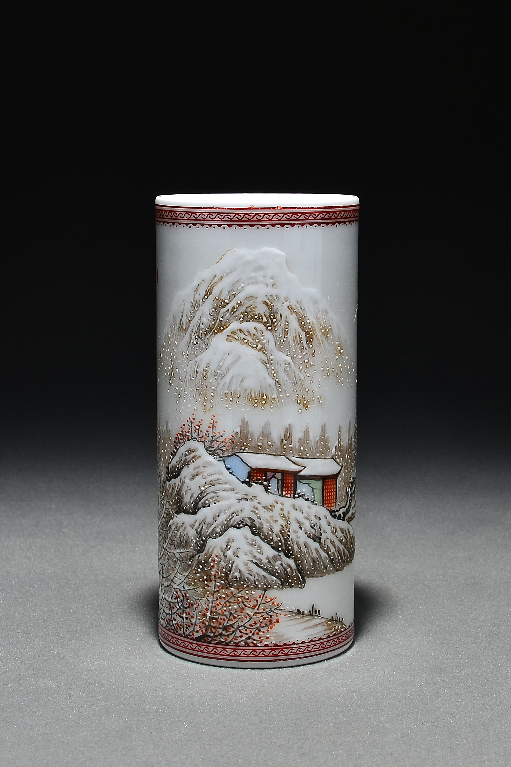 3225 何许人绘雪景图笔筒