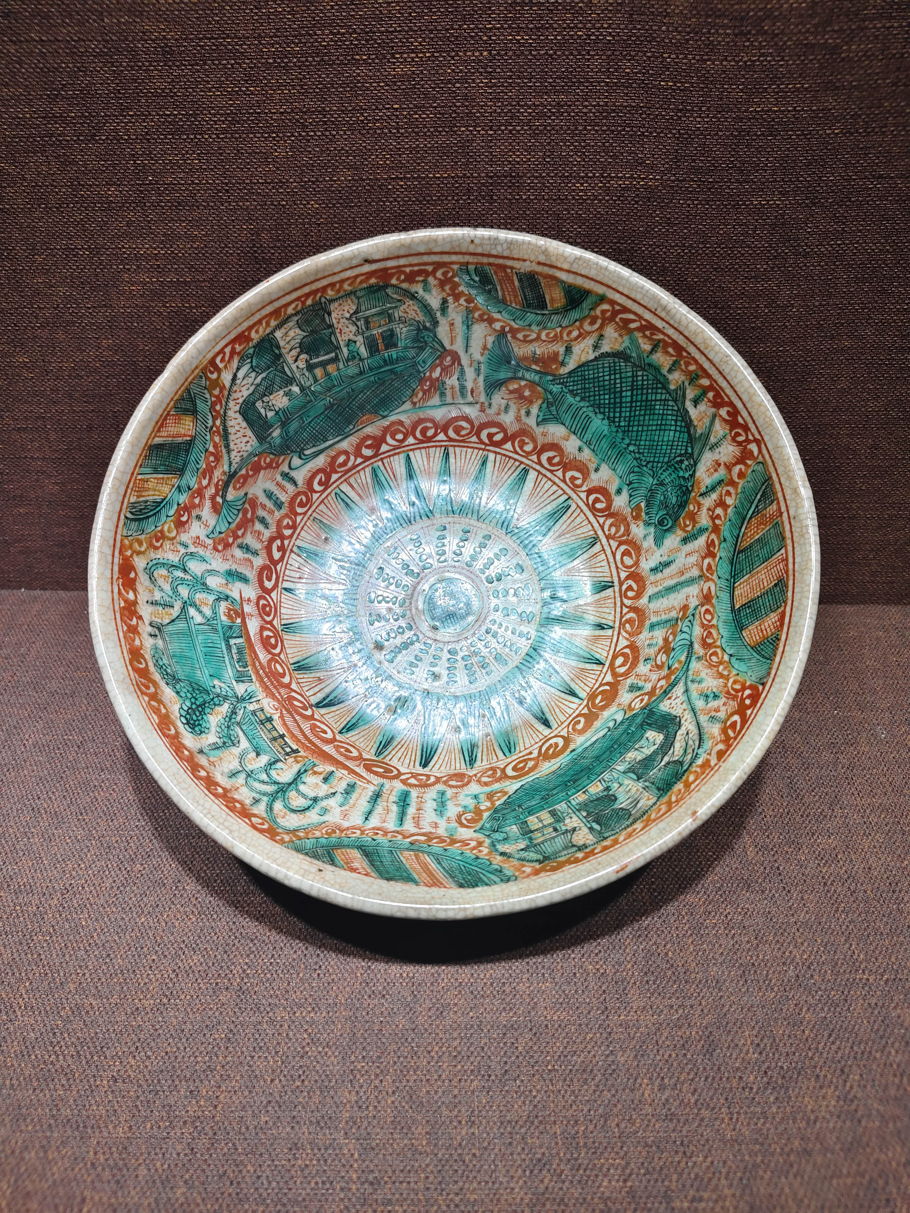 3226 漳州窑红绿彩鱼藻纹大碗