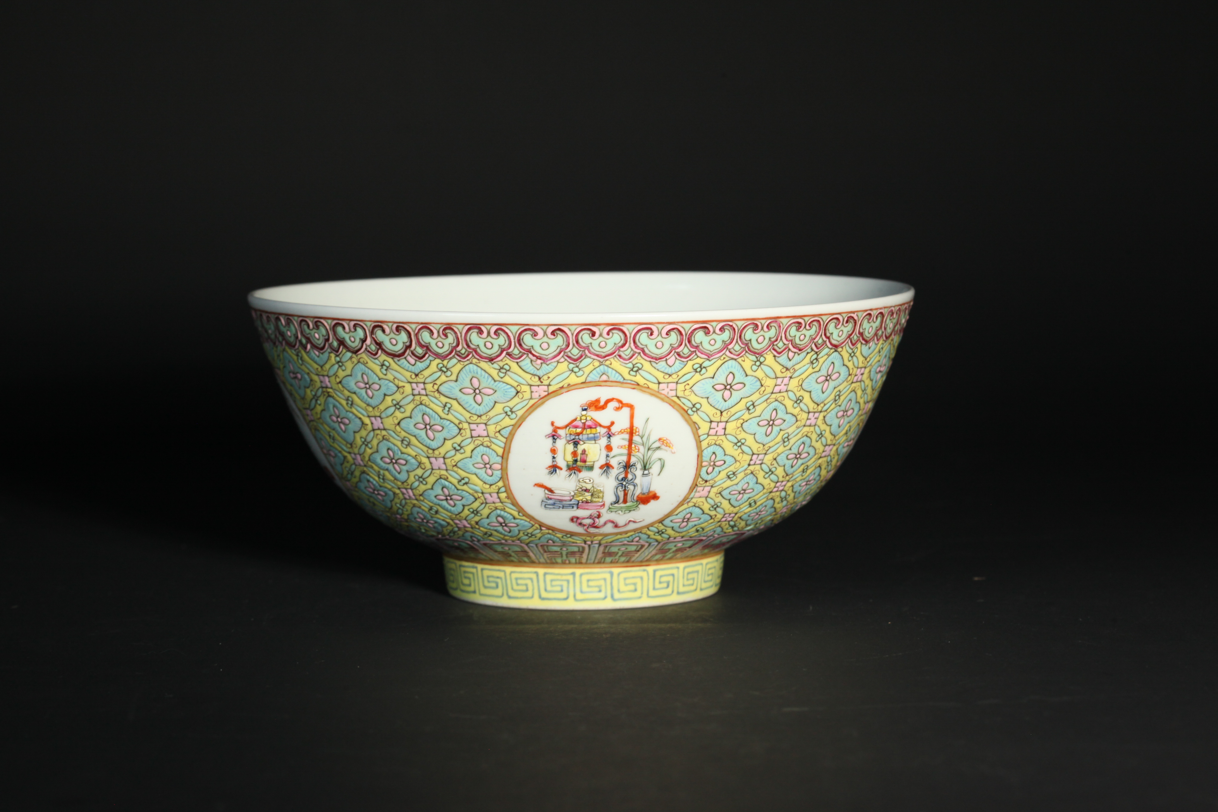 3229 粉彩锦地博古纹碗