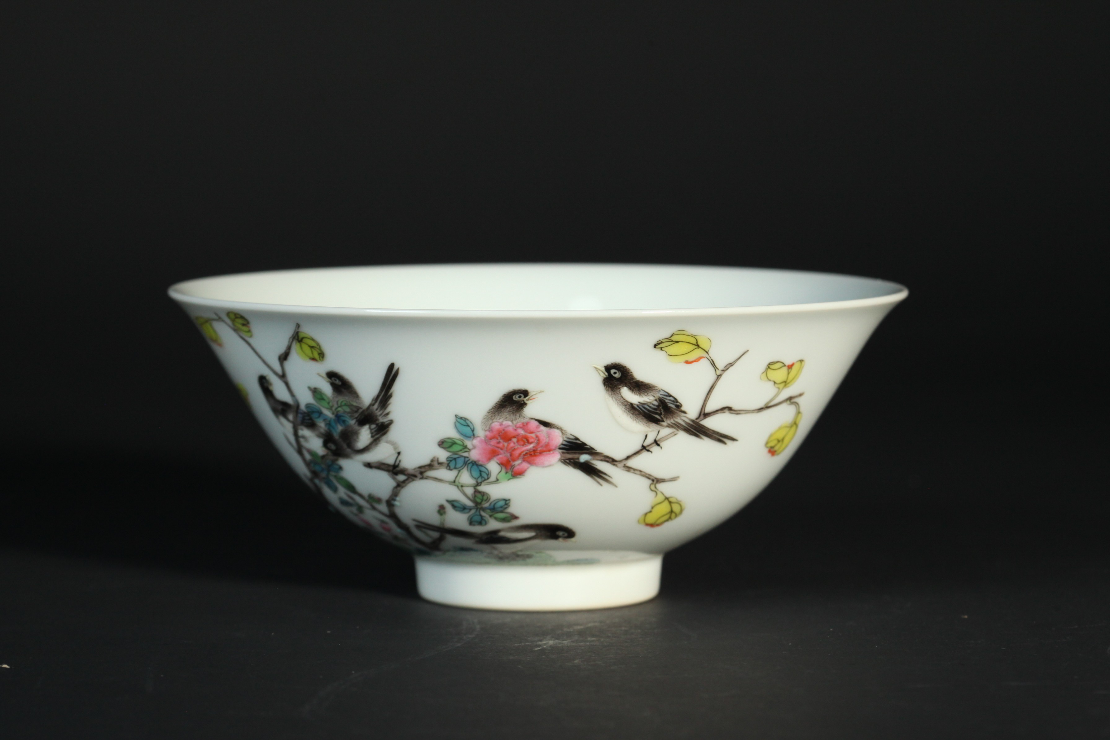 3233 粉彩花鸟图纹碗
