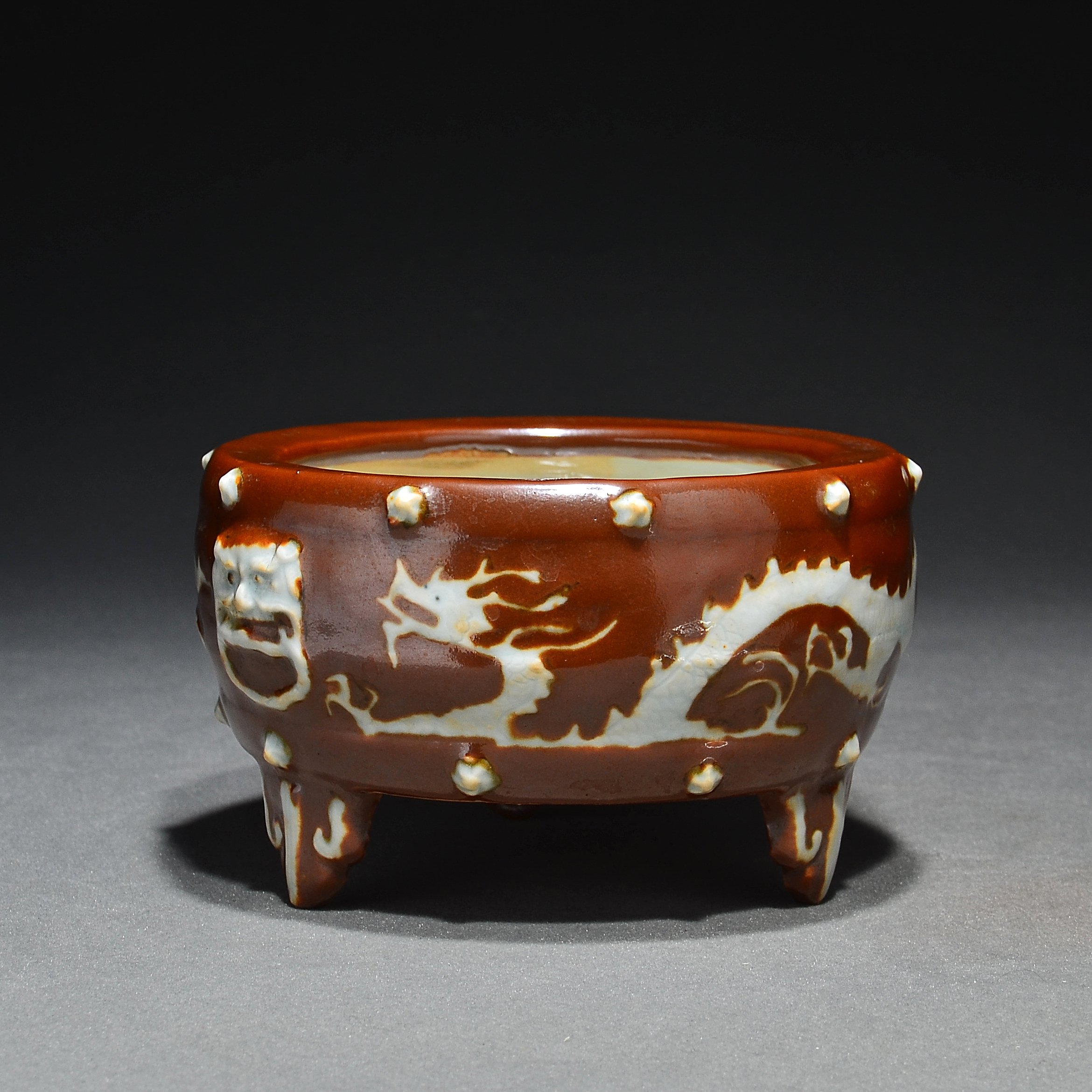 3234 紫金釉飞龙纹三足香炉