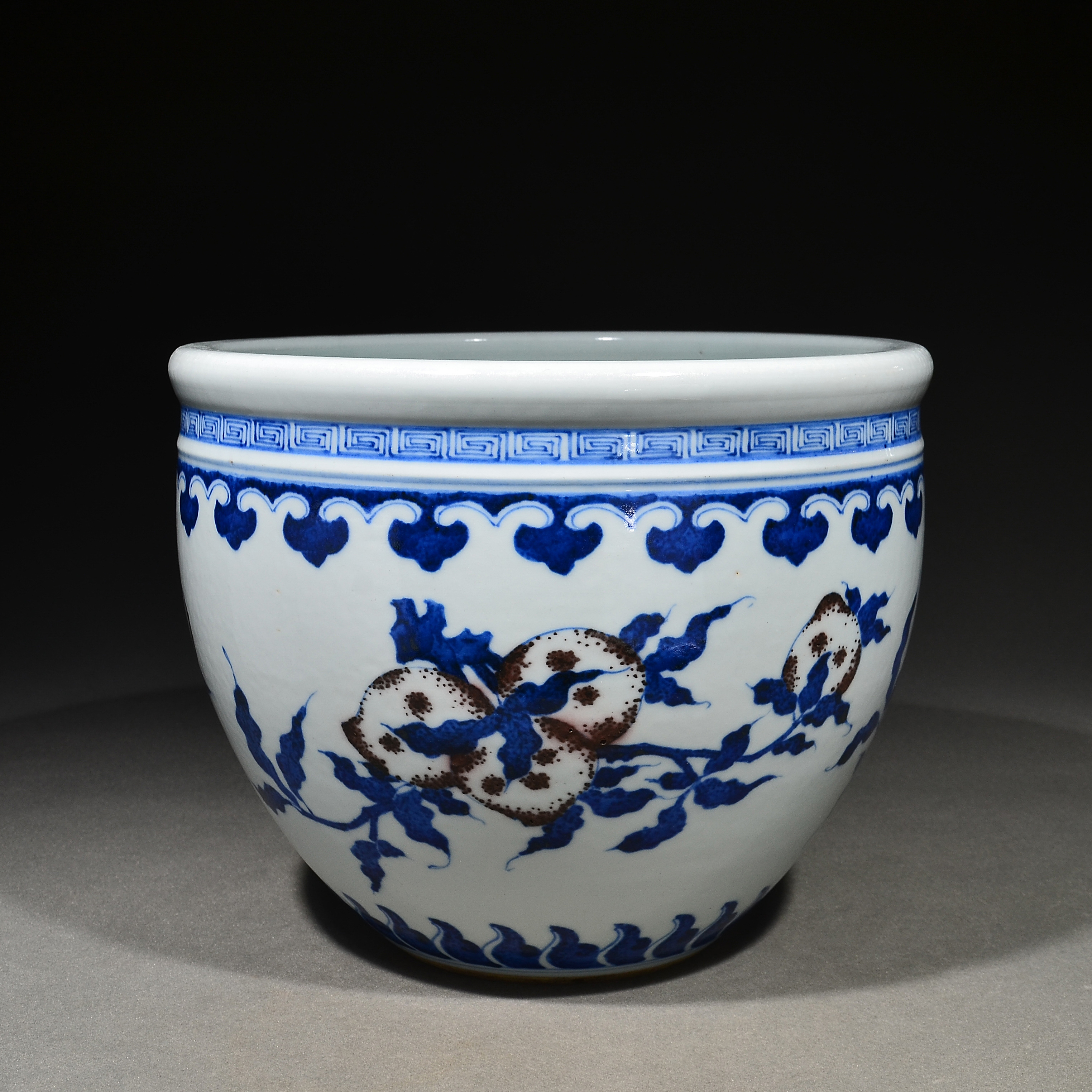 3236 青花釉里红折枝三多纹文房卷缸