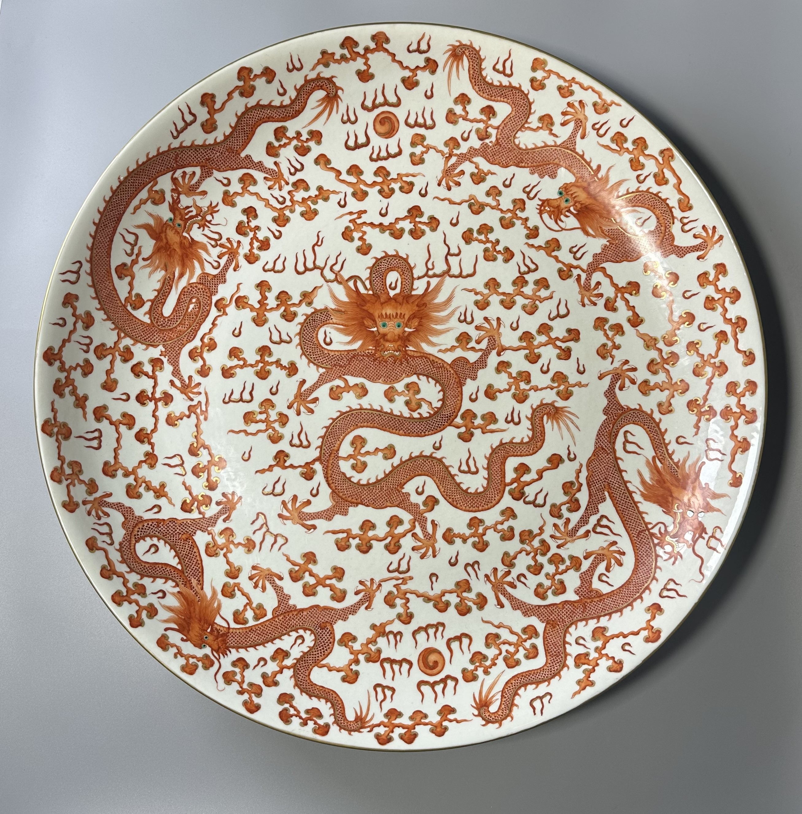 3237 矾红龙纹大盘