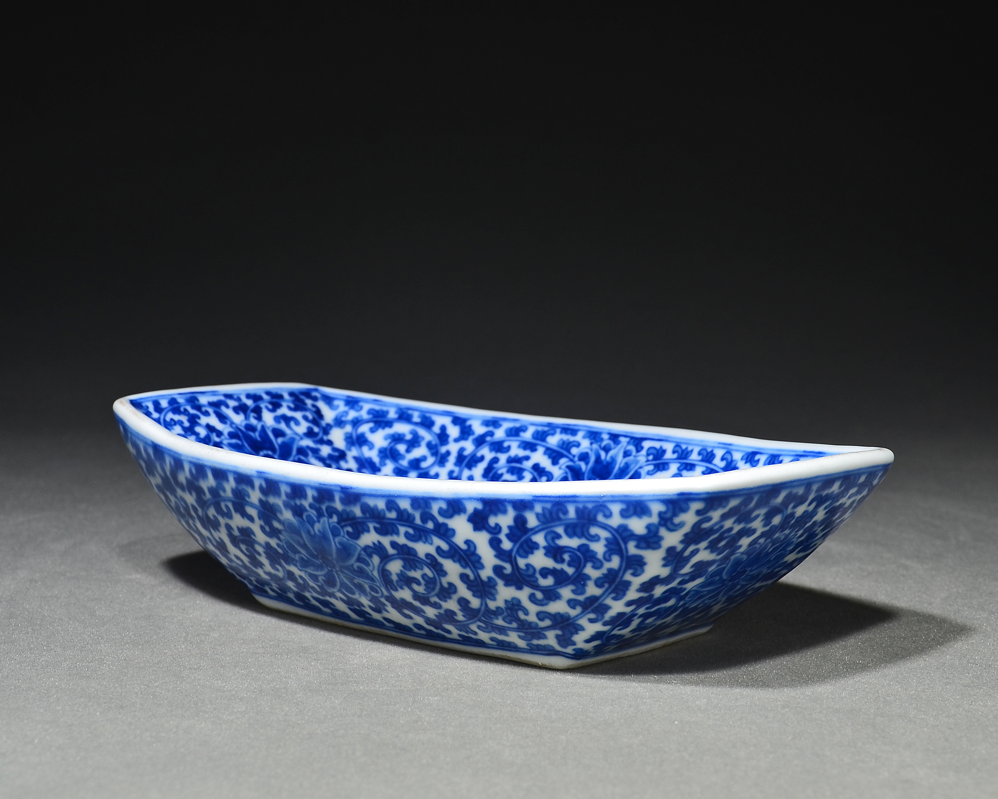 3239 青花缠枝莲纹船型茶托