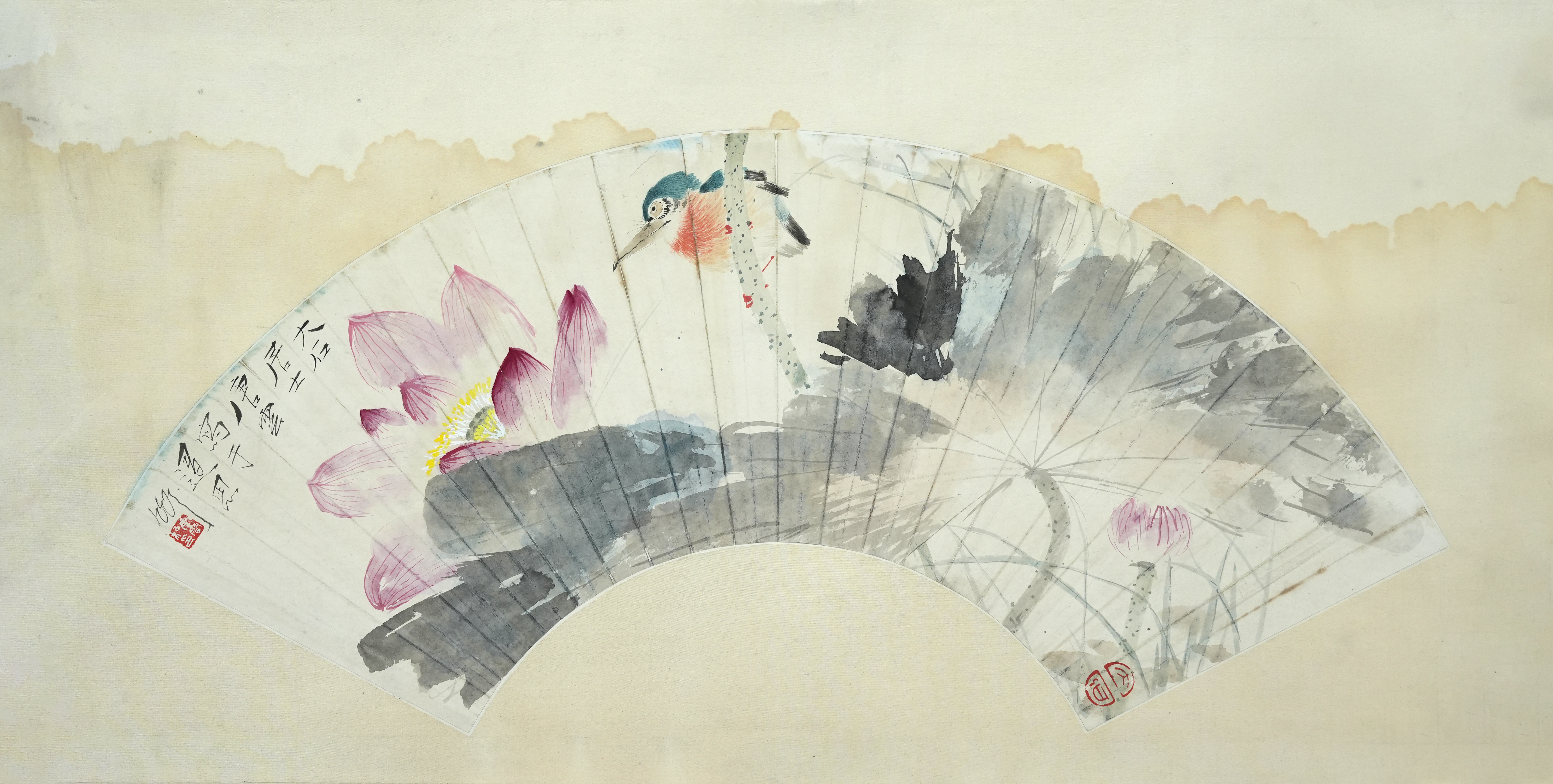 1 唐云(1910~1993)“荷池翠鸟”扇面