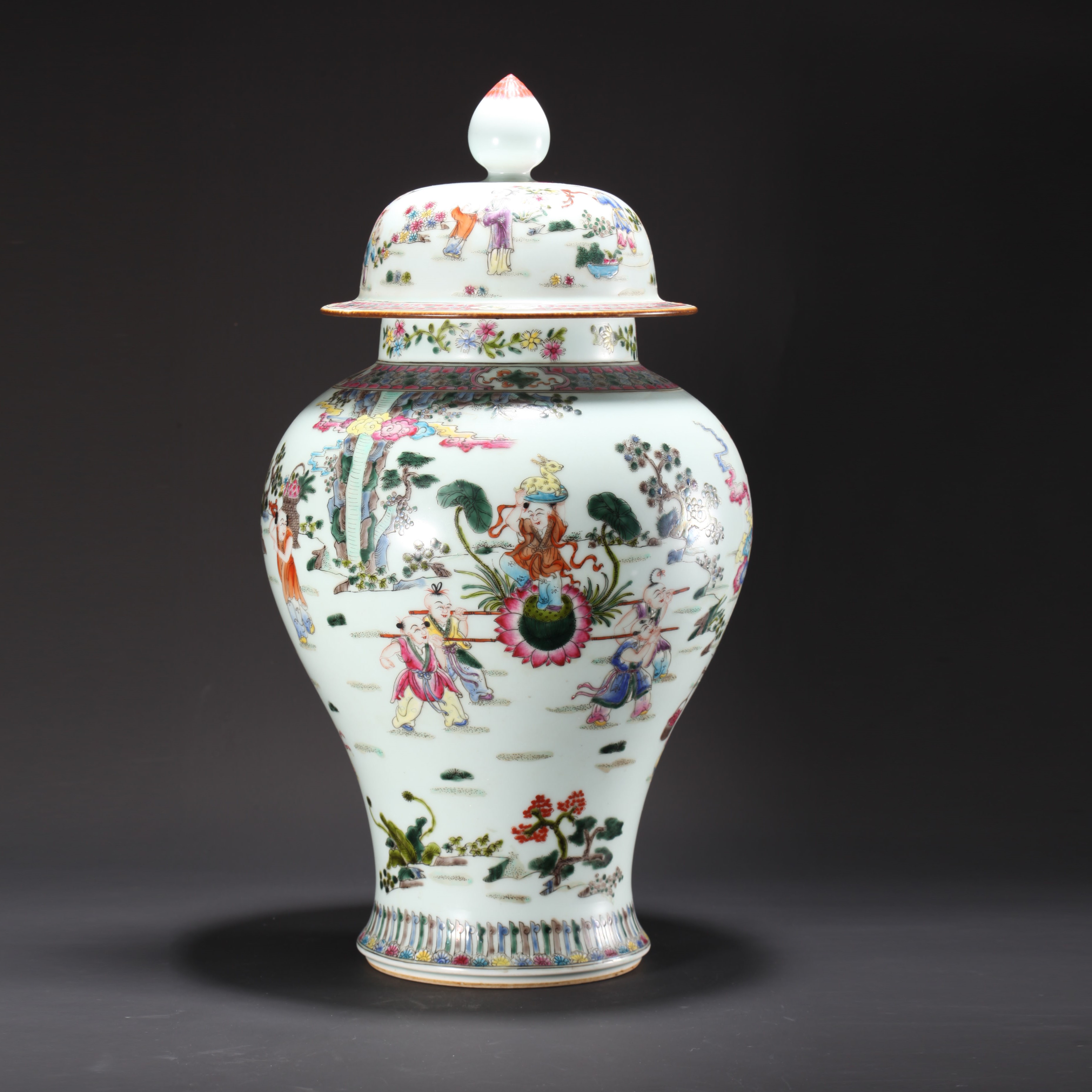 1511 粉彩童子贺寿纹将军罐
