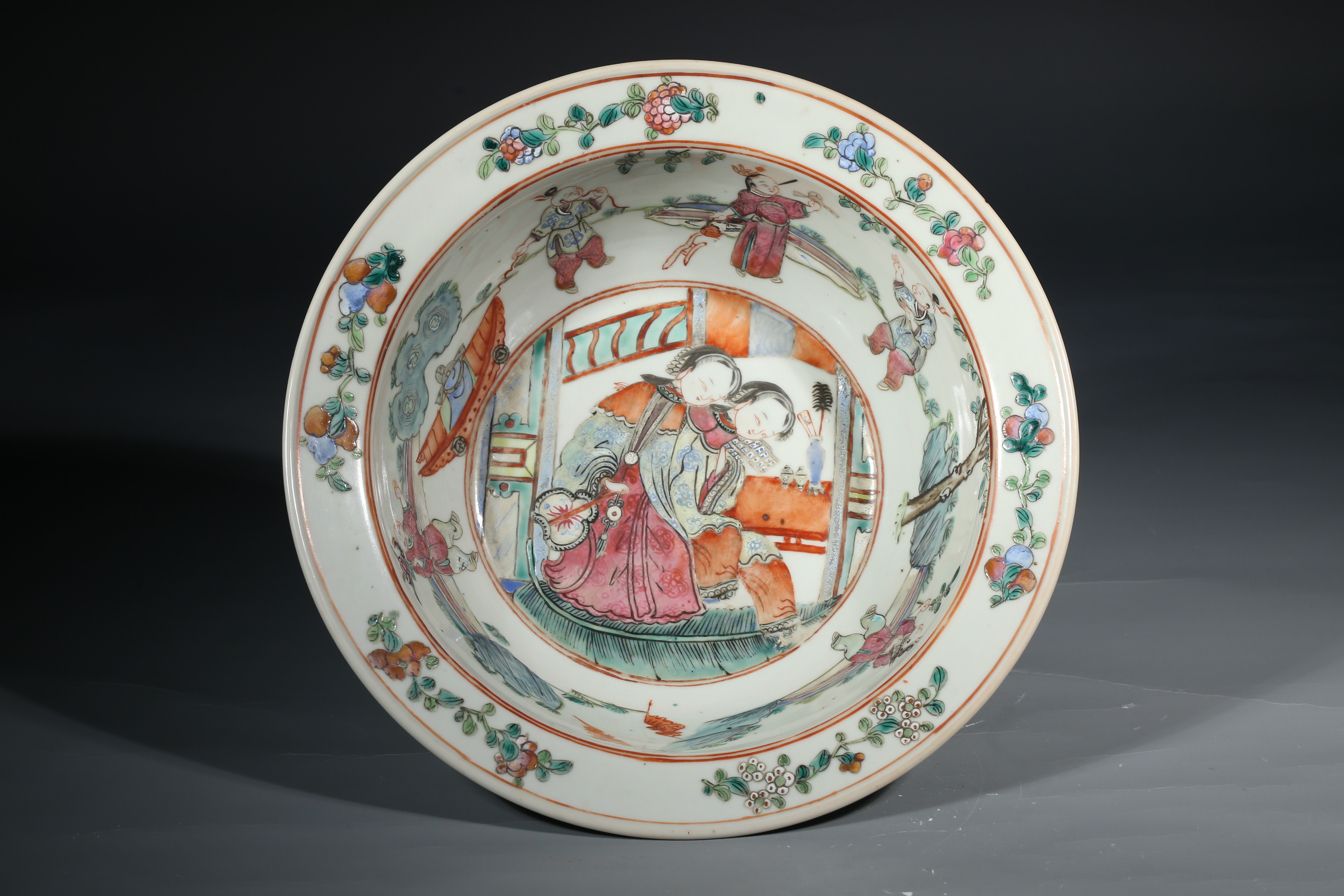 1512 粉彩教子图折沿盆