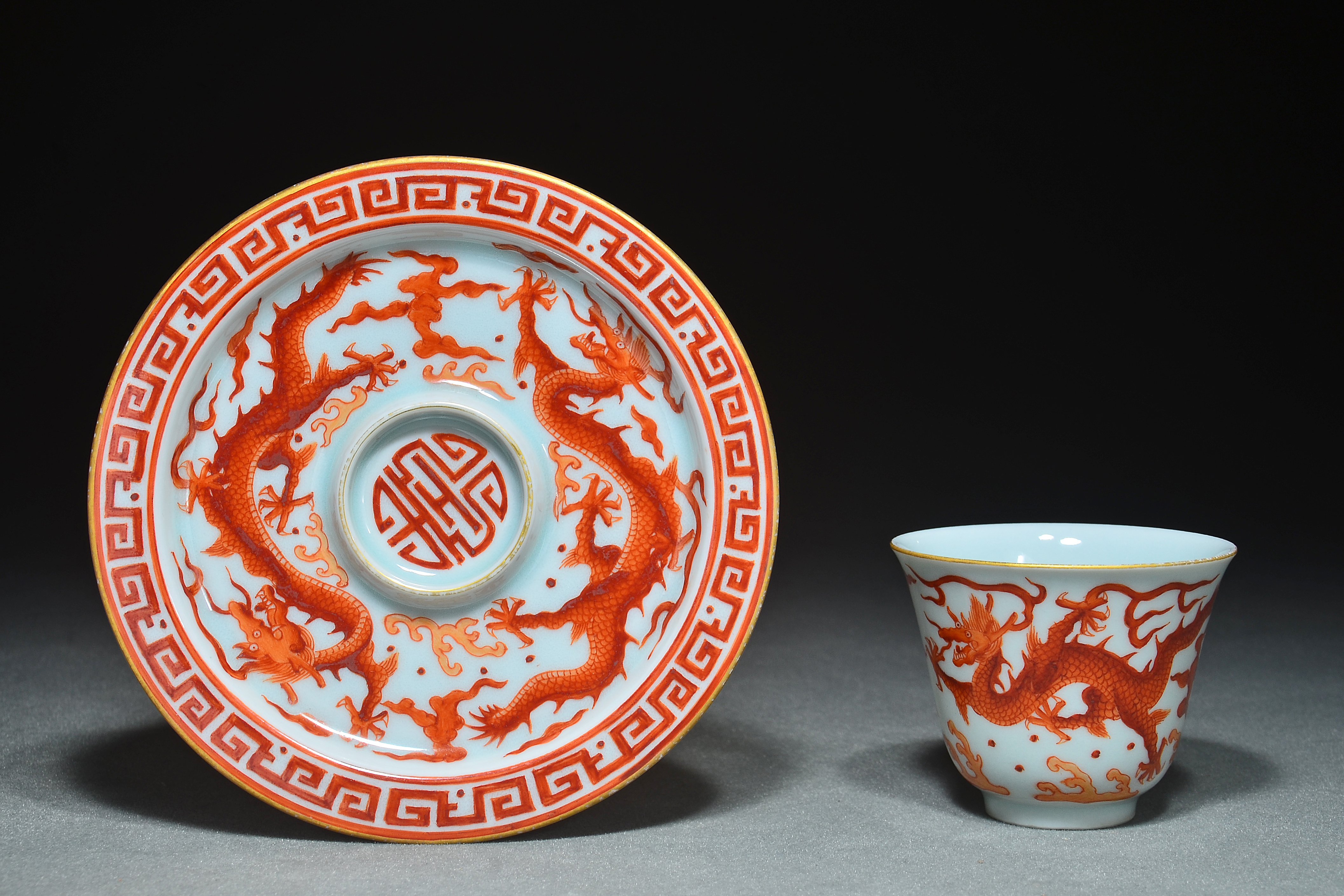 1516 矾红云龙纹茶杯茶托一套