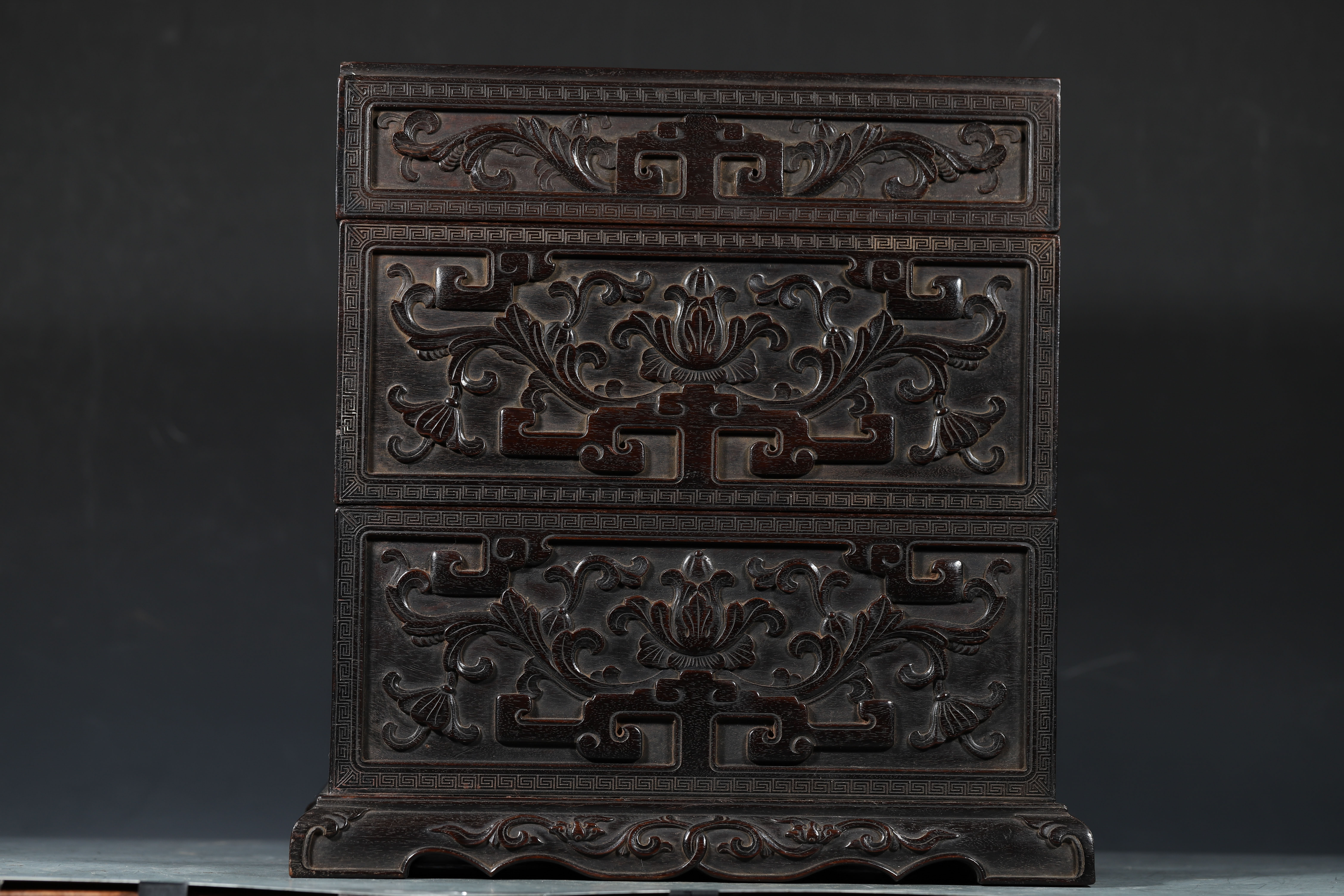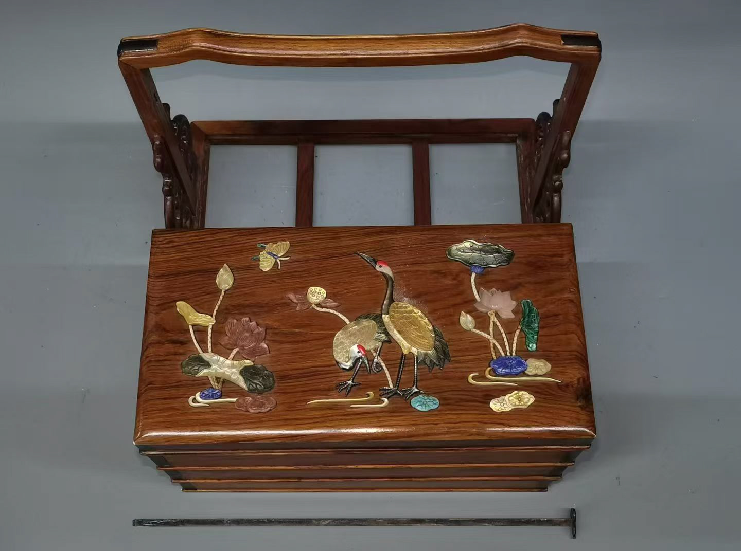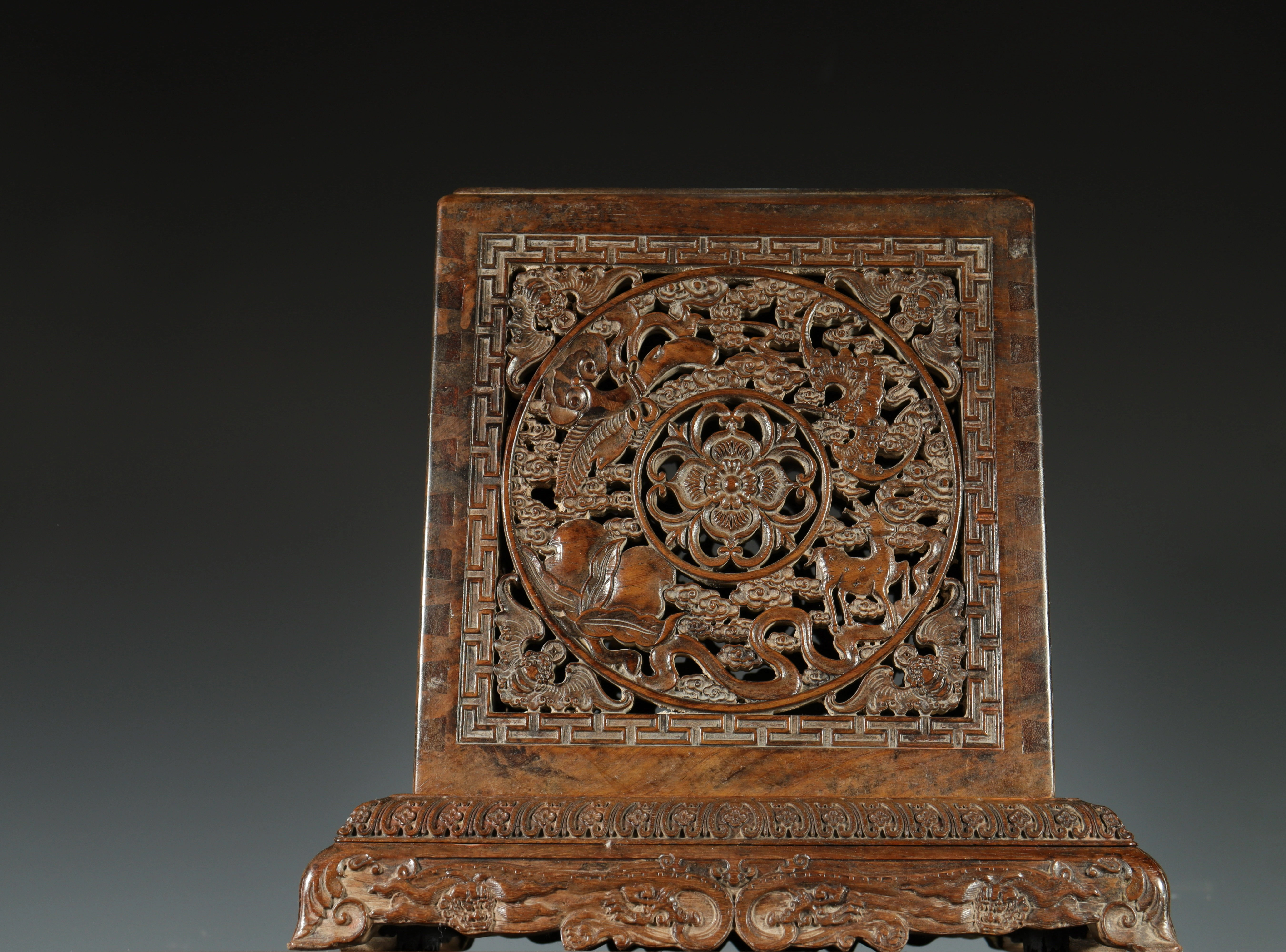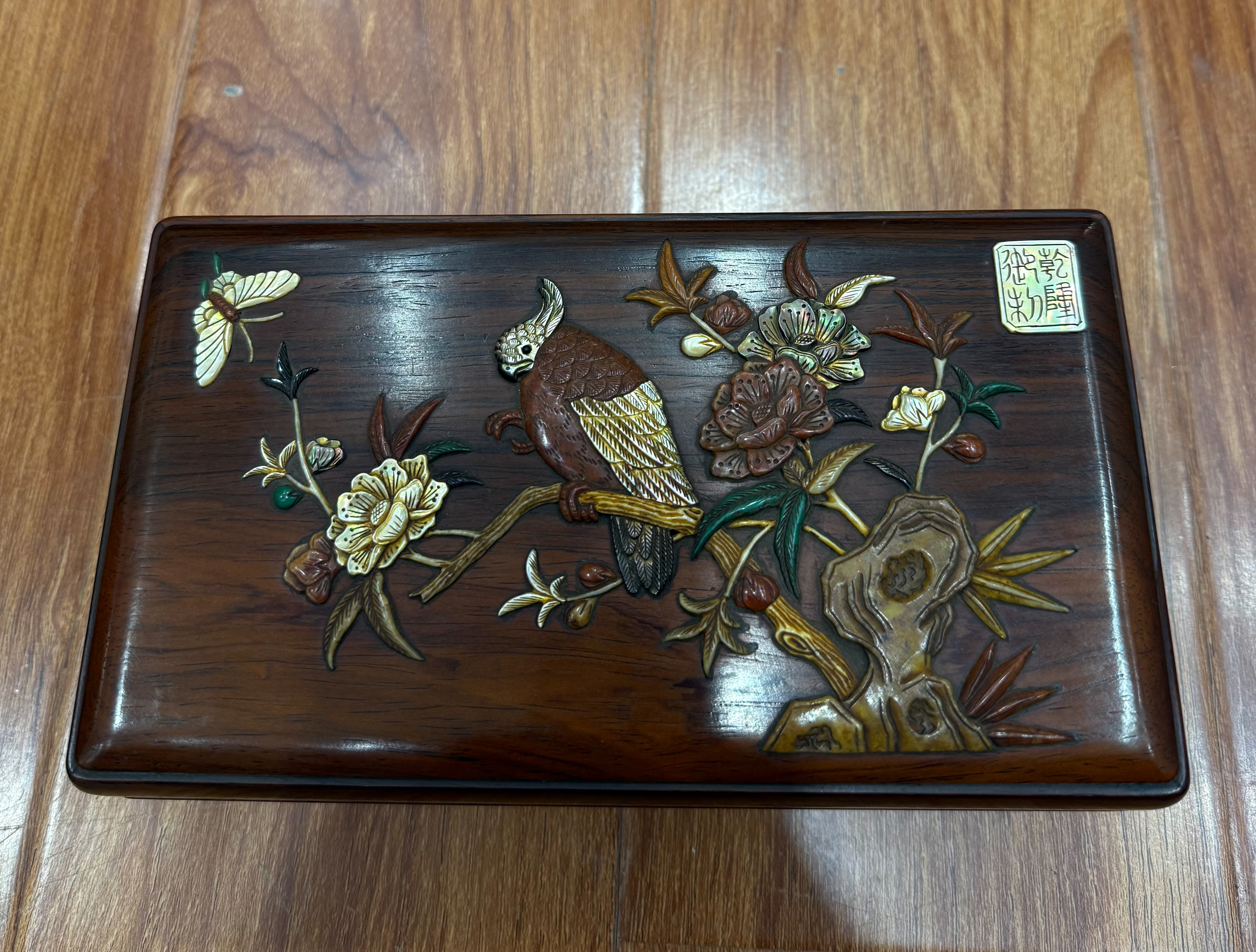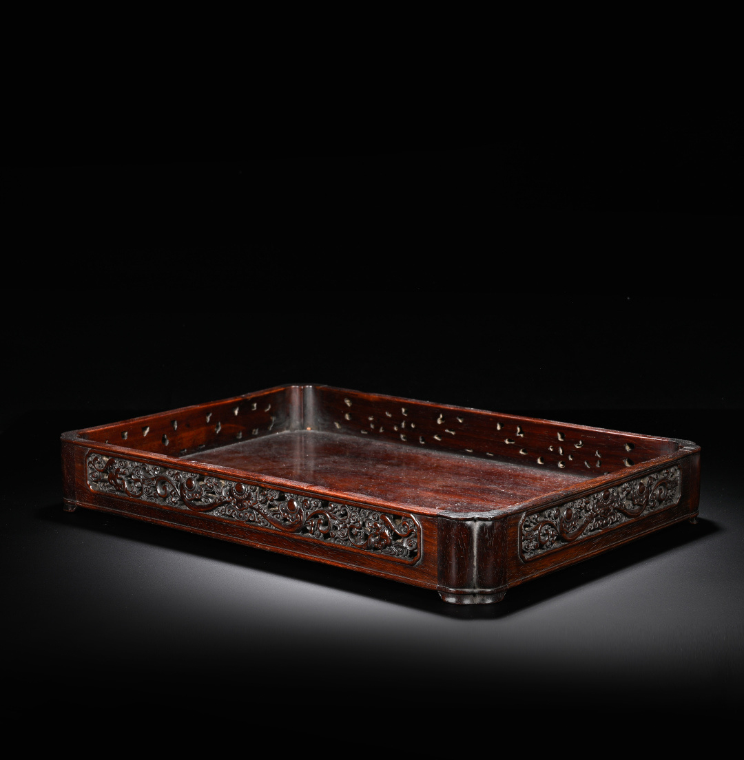 1004 紫檀木雕螭龙纹文房盒茶盘
