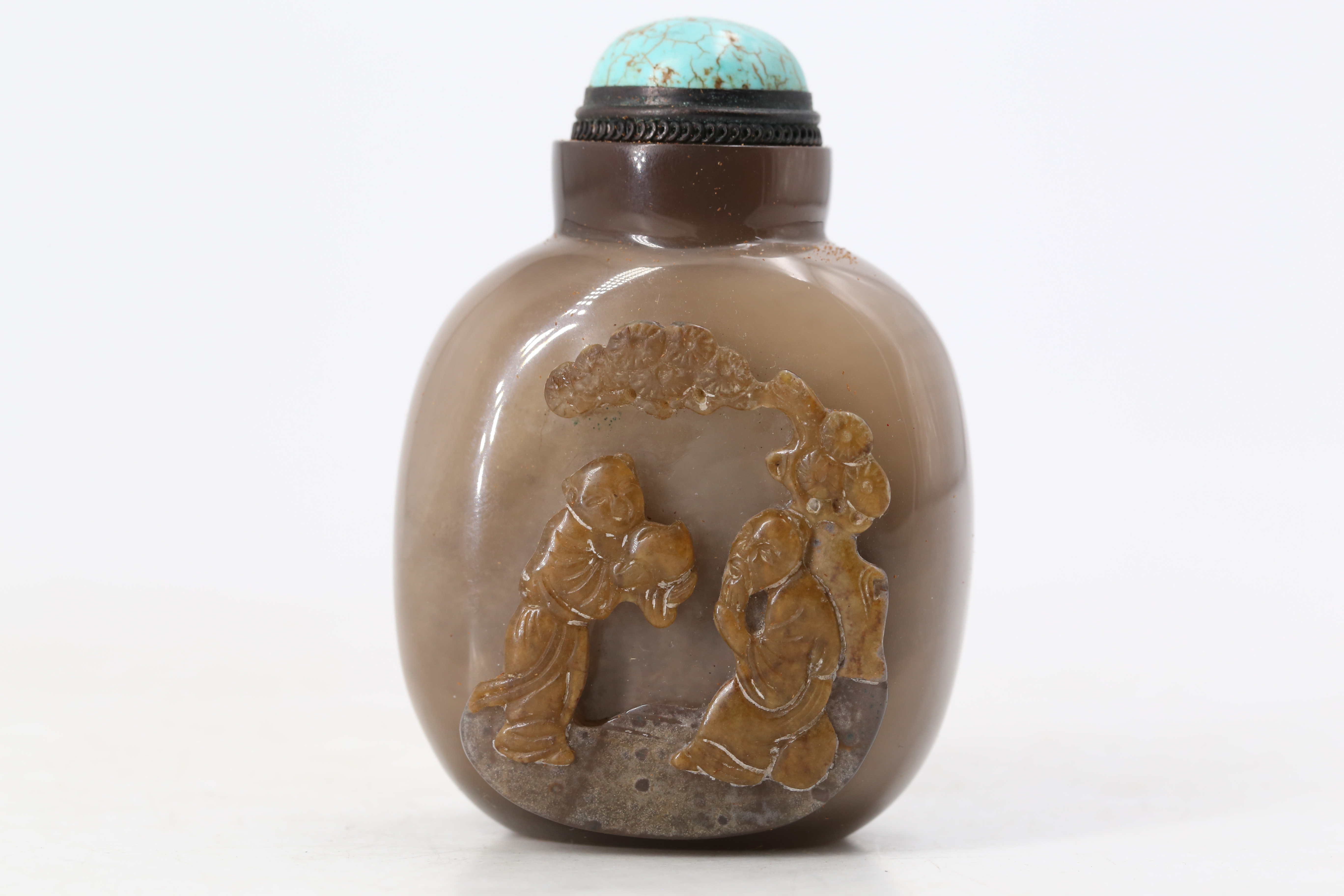 1082 玛瑙巧色松下献寿图鼻烟壶