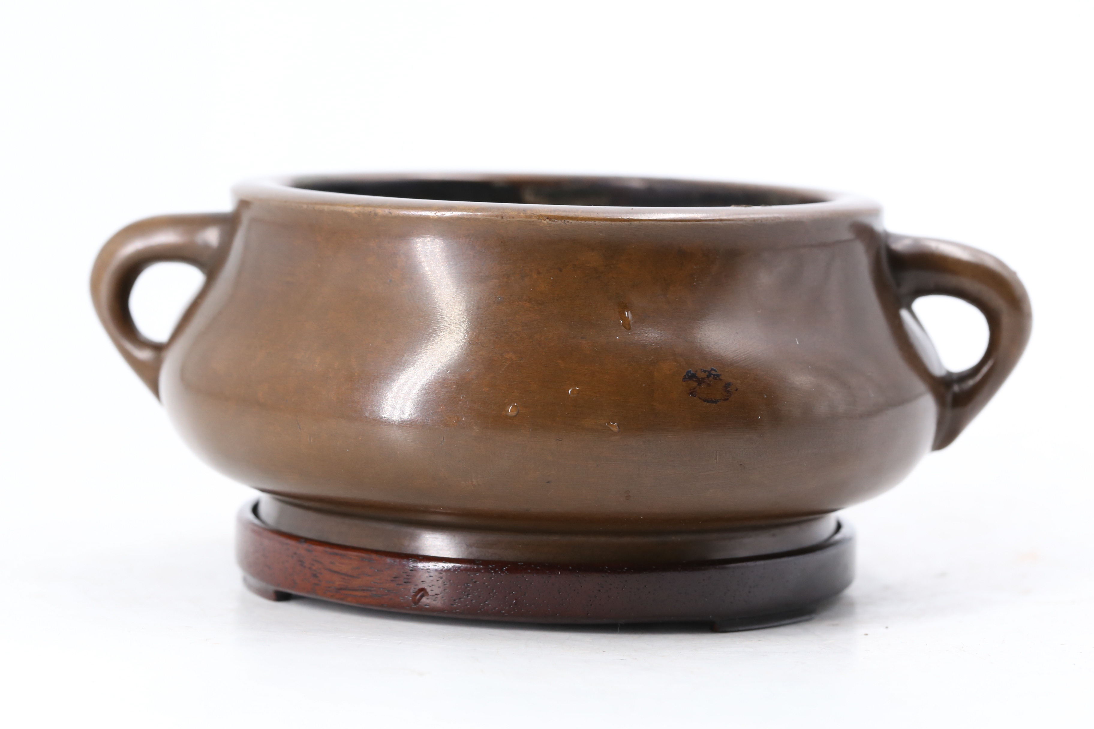 1092 大明宣德年制款铜天鸡耳双龙纹香炉