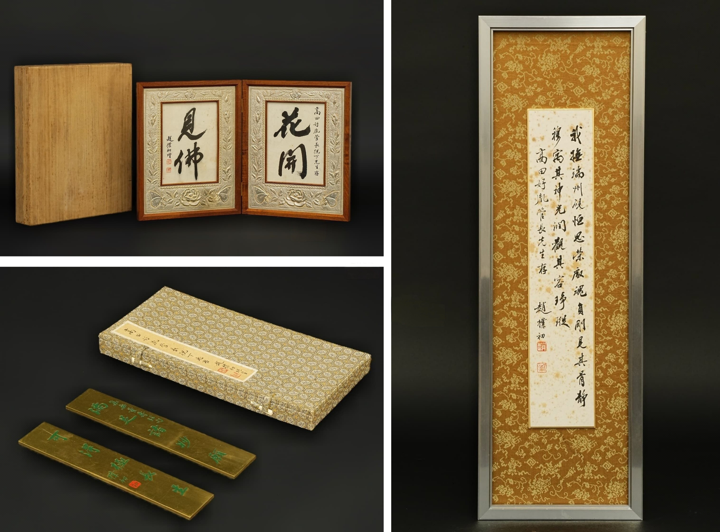 尺寸:行书《花开见佛》:18*13cm*2 行书:36*7cm 镇纸:长21cm*2