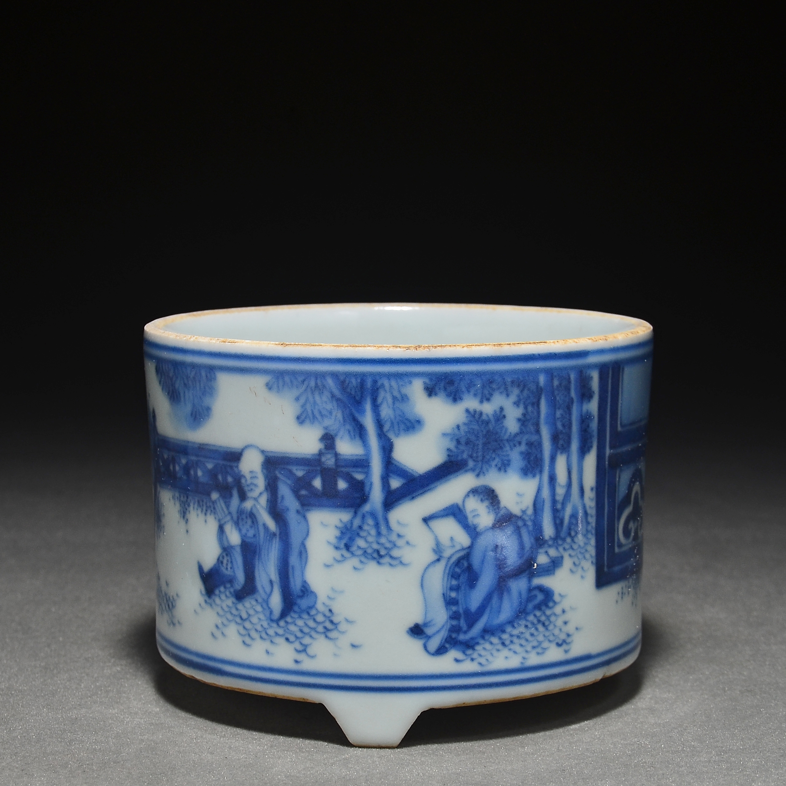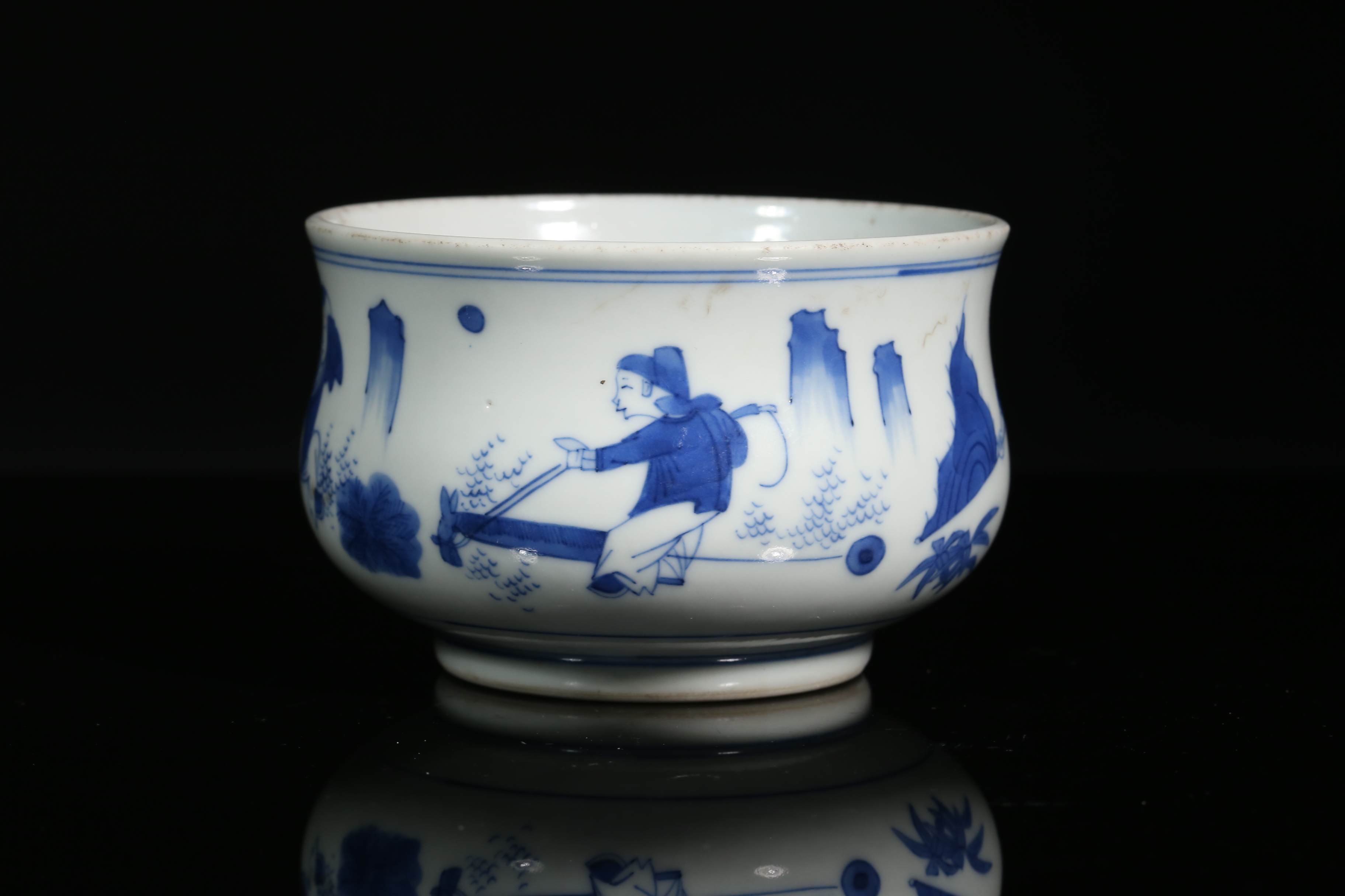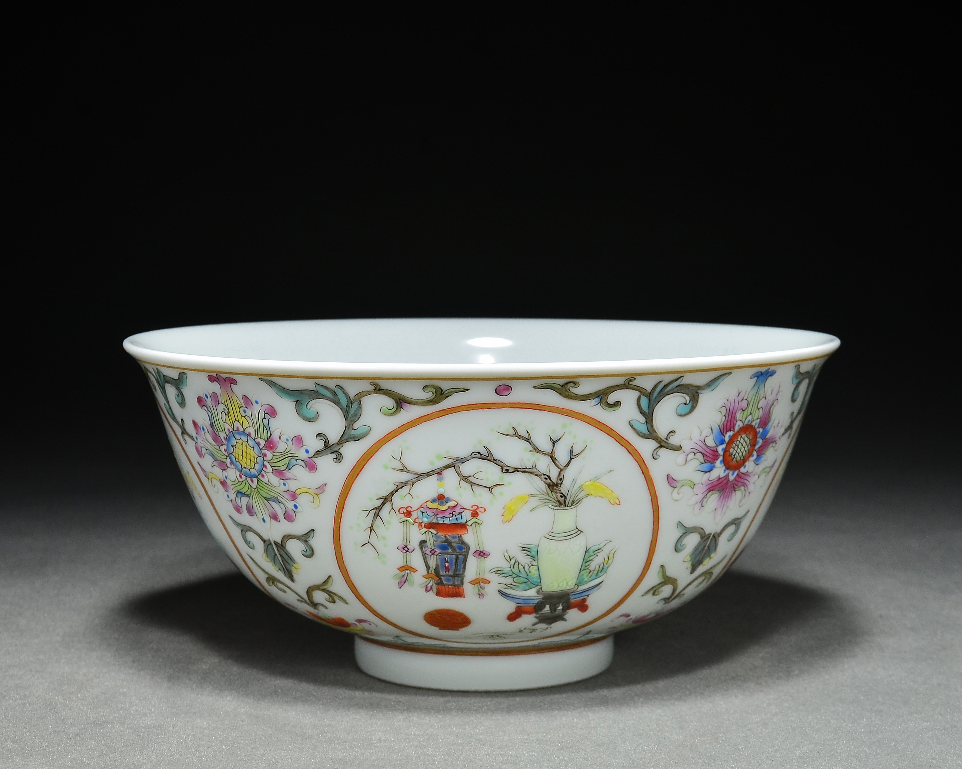 2508 粉彩缠枝莲纹开窗博古图节令膳碗