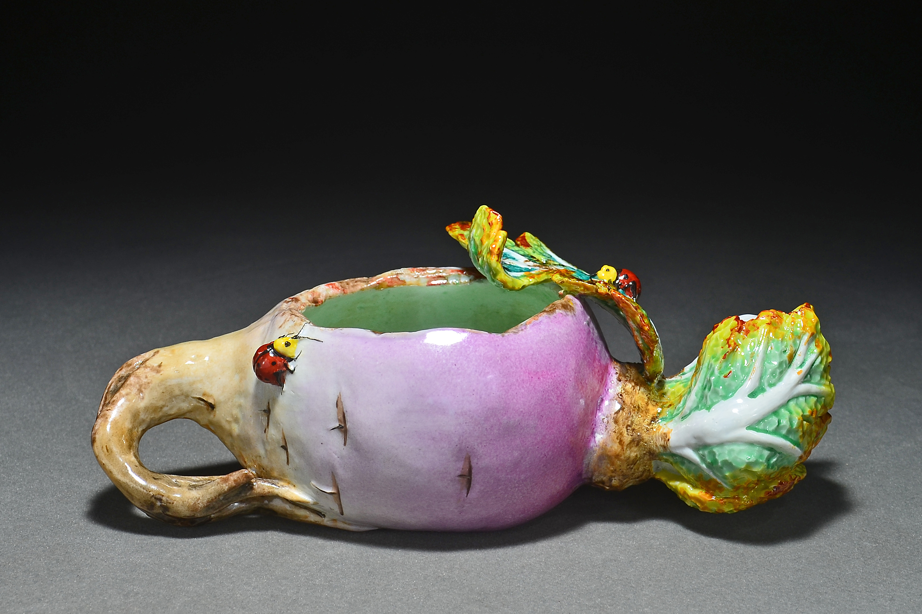 2502 仿生瓷雕粉彩萝卜型笔洗