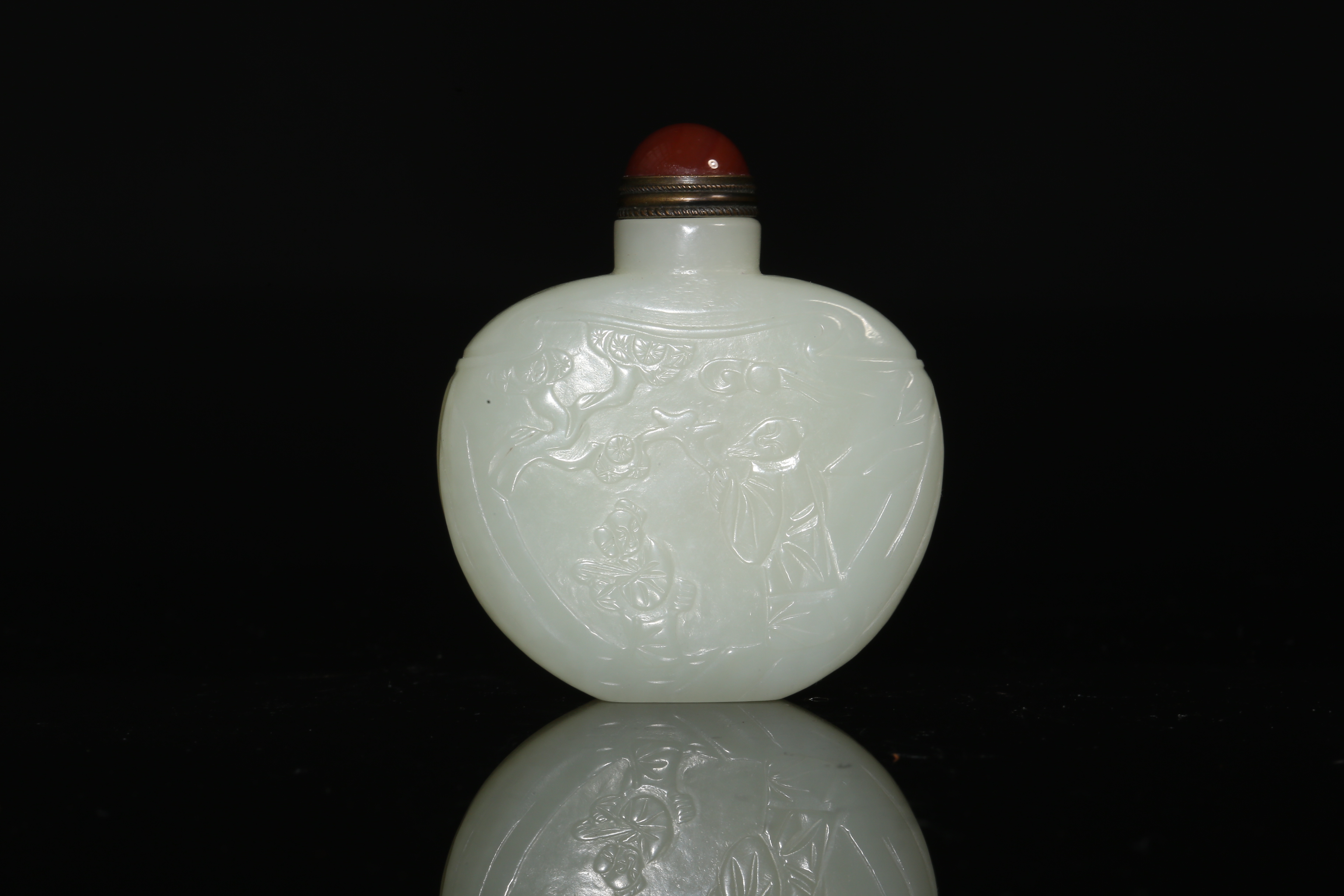 2521 白玉浮雕高士人物鼻烟壶