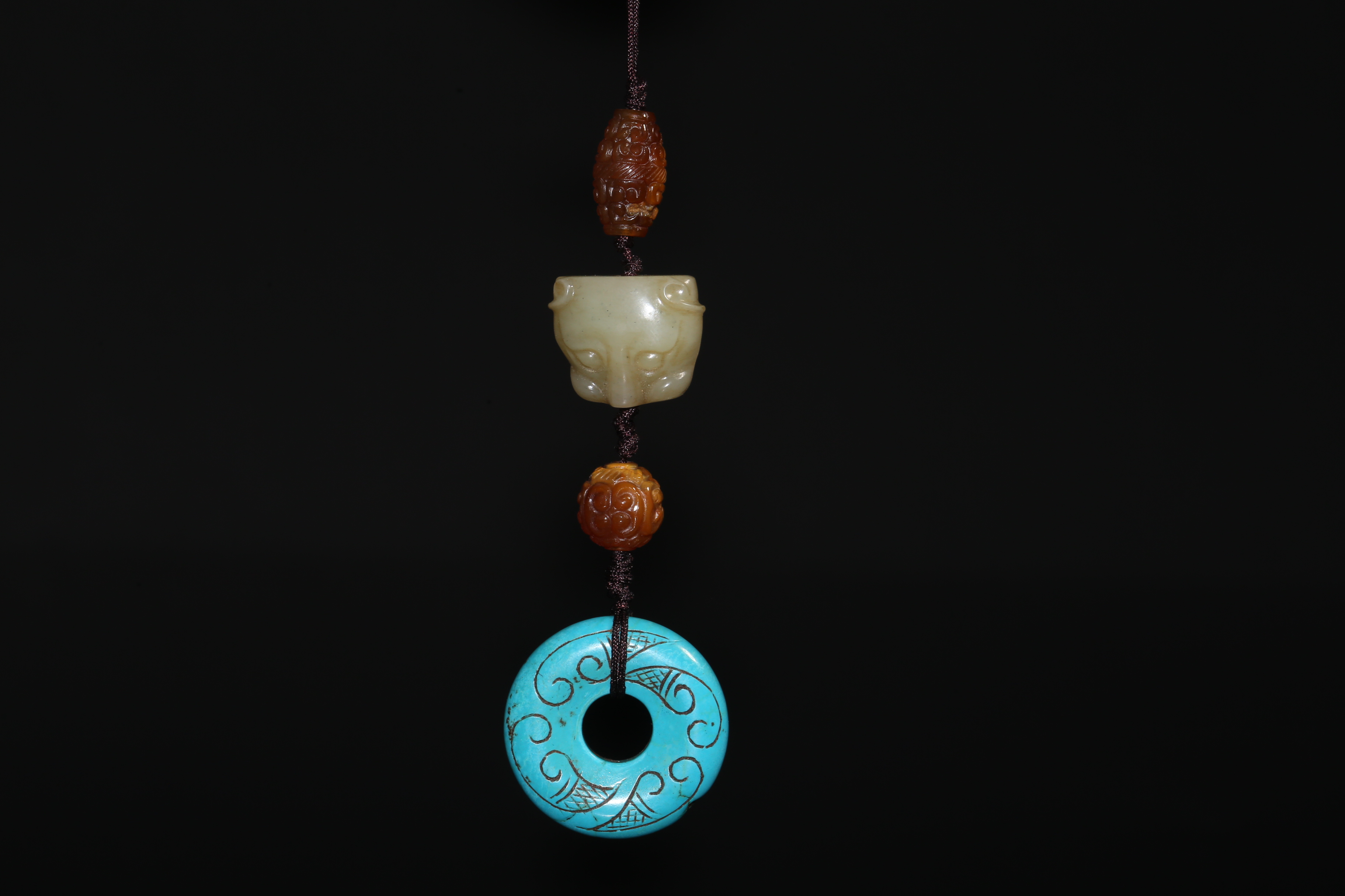 2536 白玉兽首、松石璧、玛瑙多宝串
