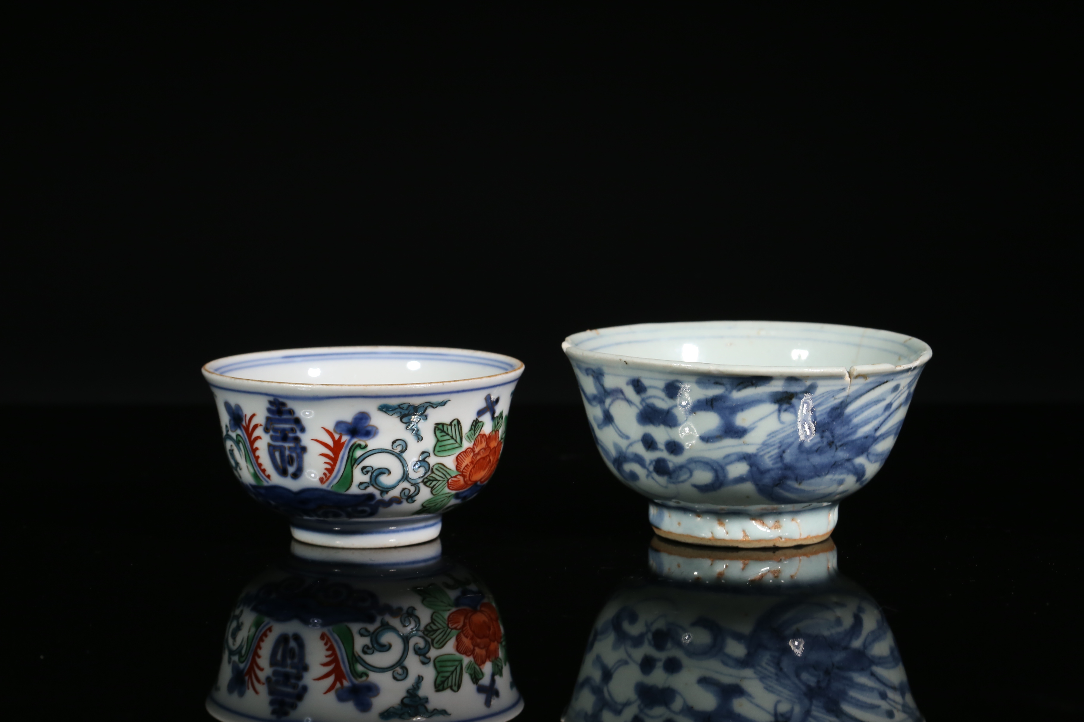2566 青花茶圆两只
