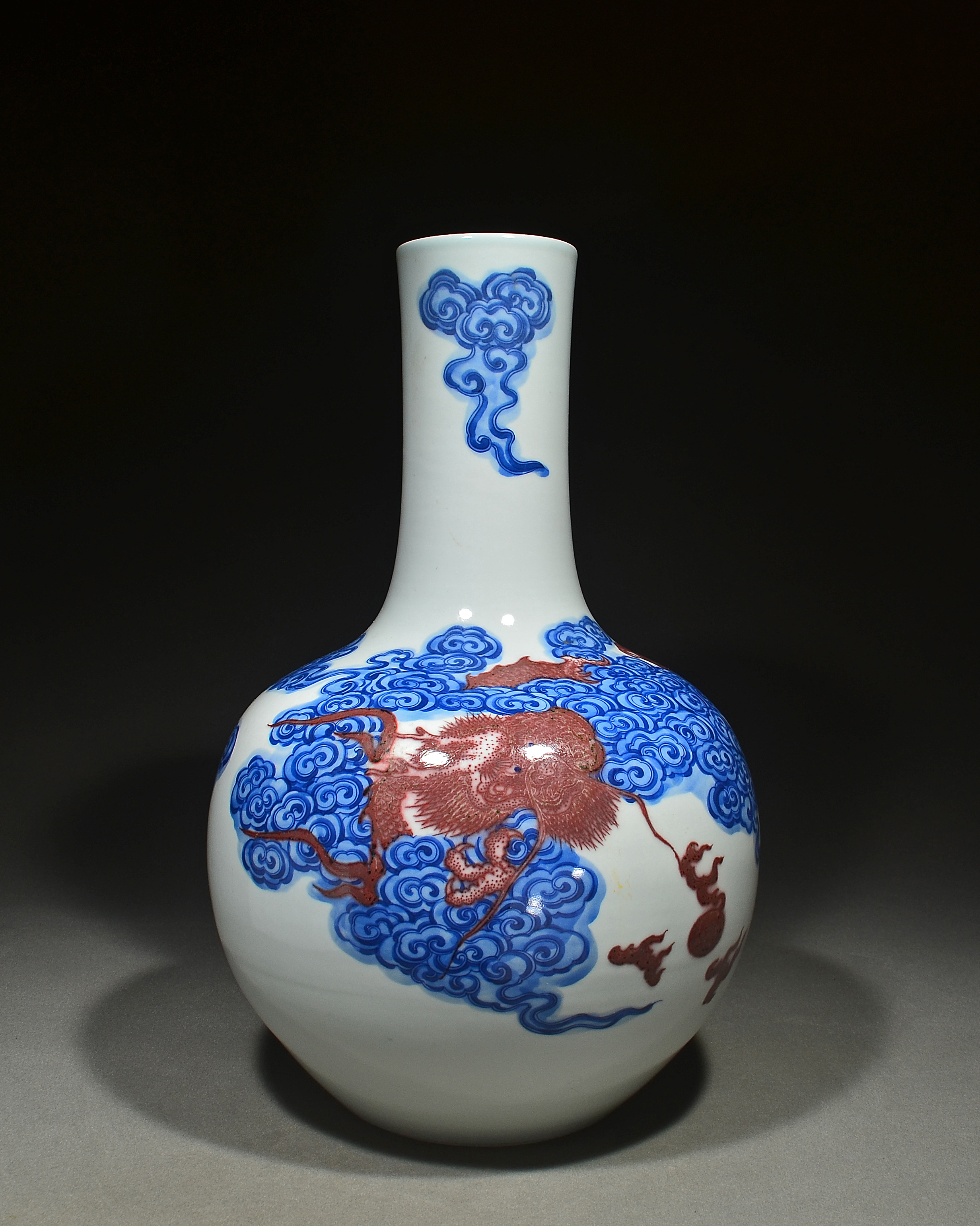 2567 青花釉里红云龙纹天球瓶