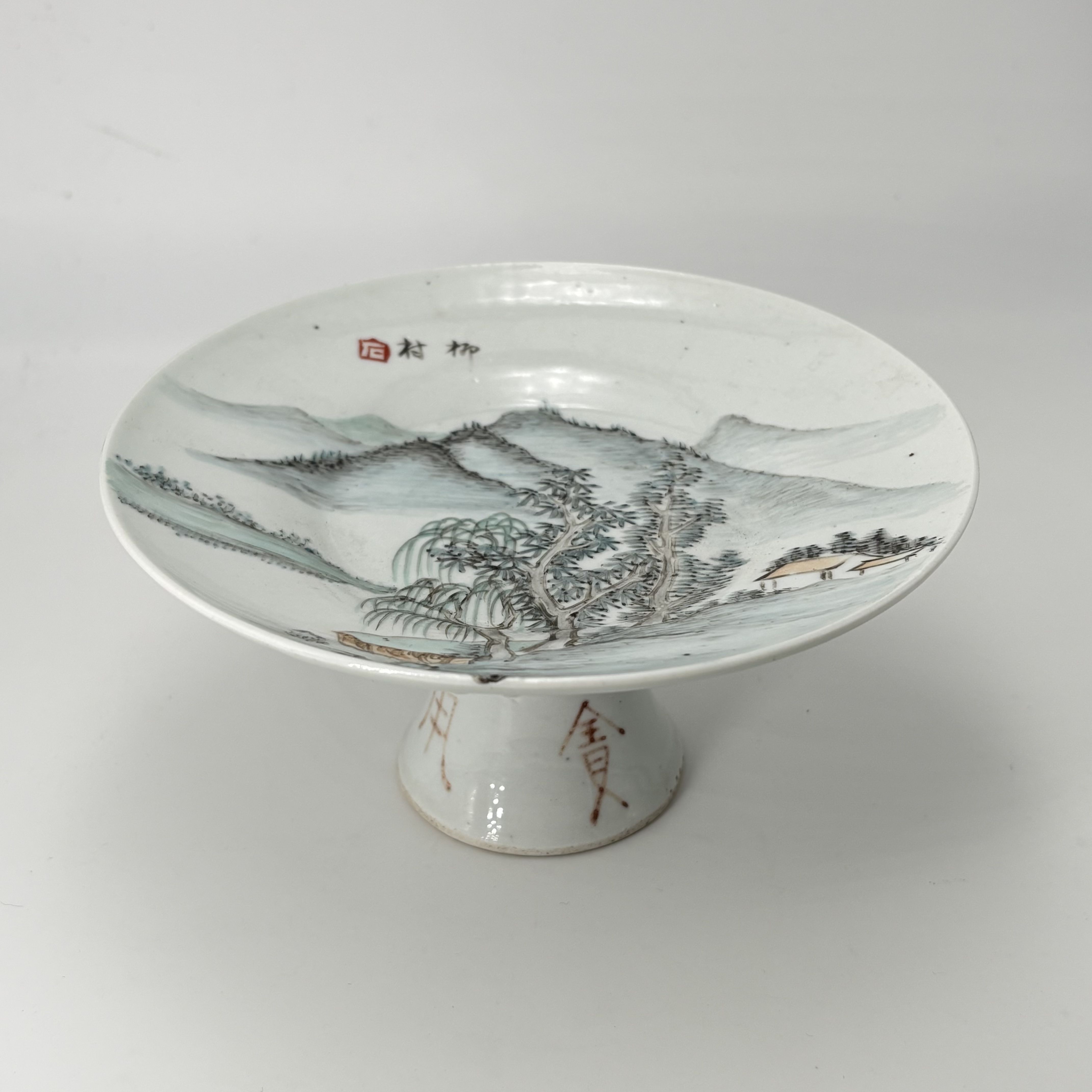 2573 浅降彩山水图文盘