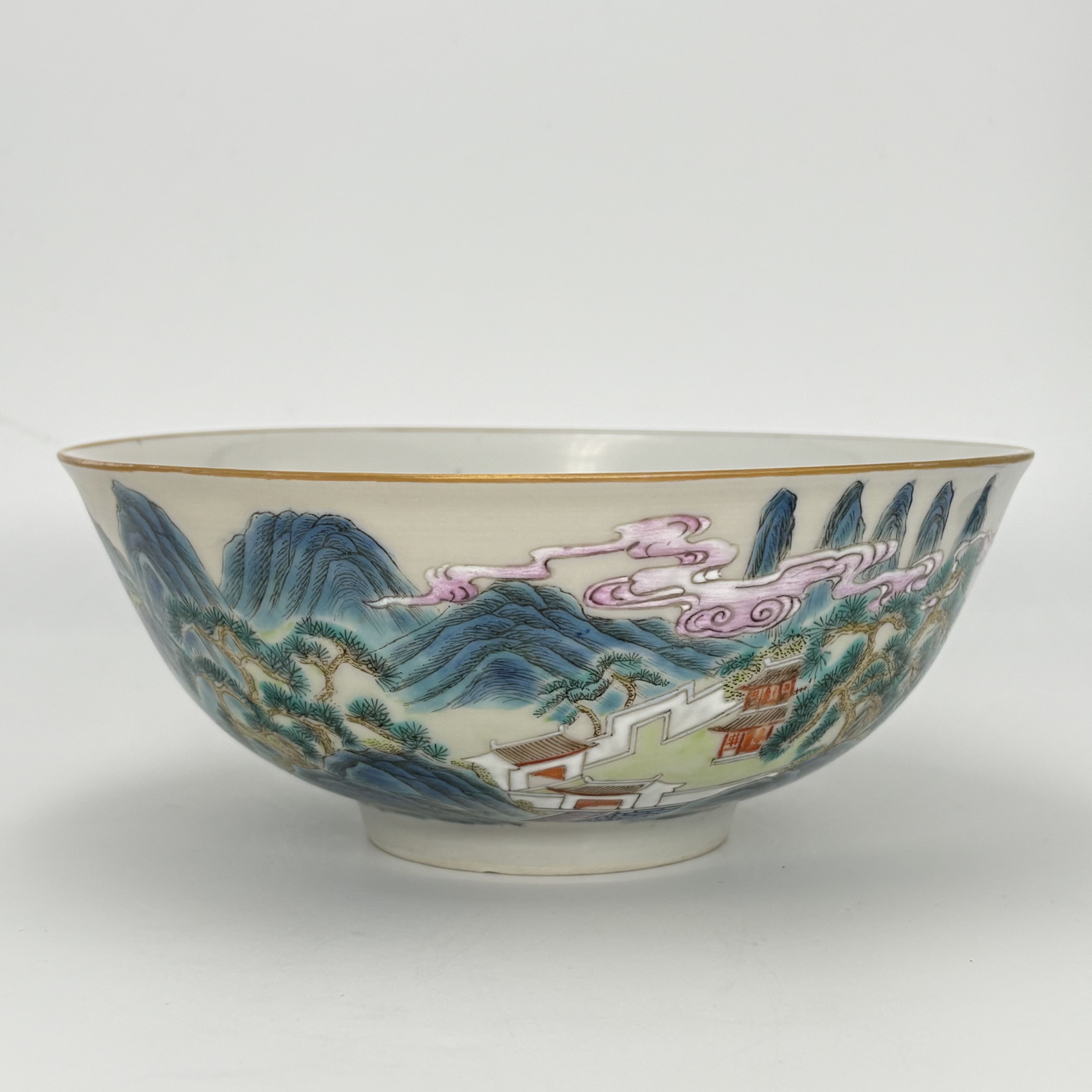 2574 粉彩青绿山水图文碗