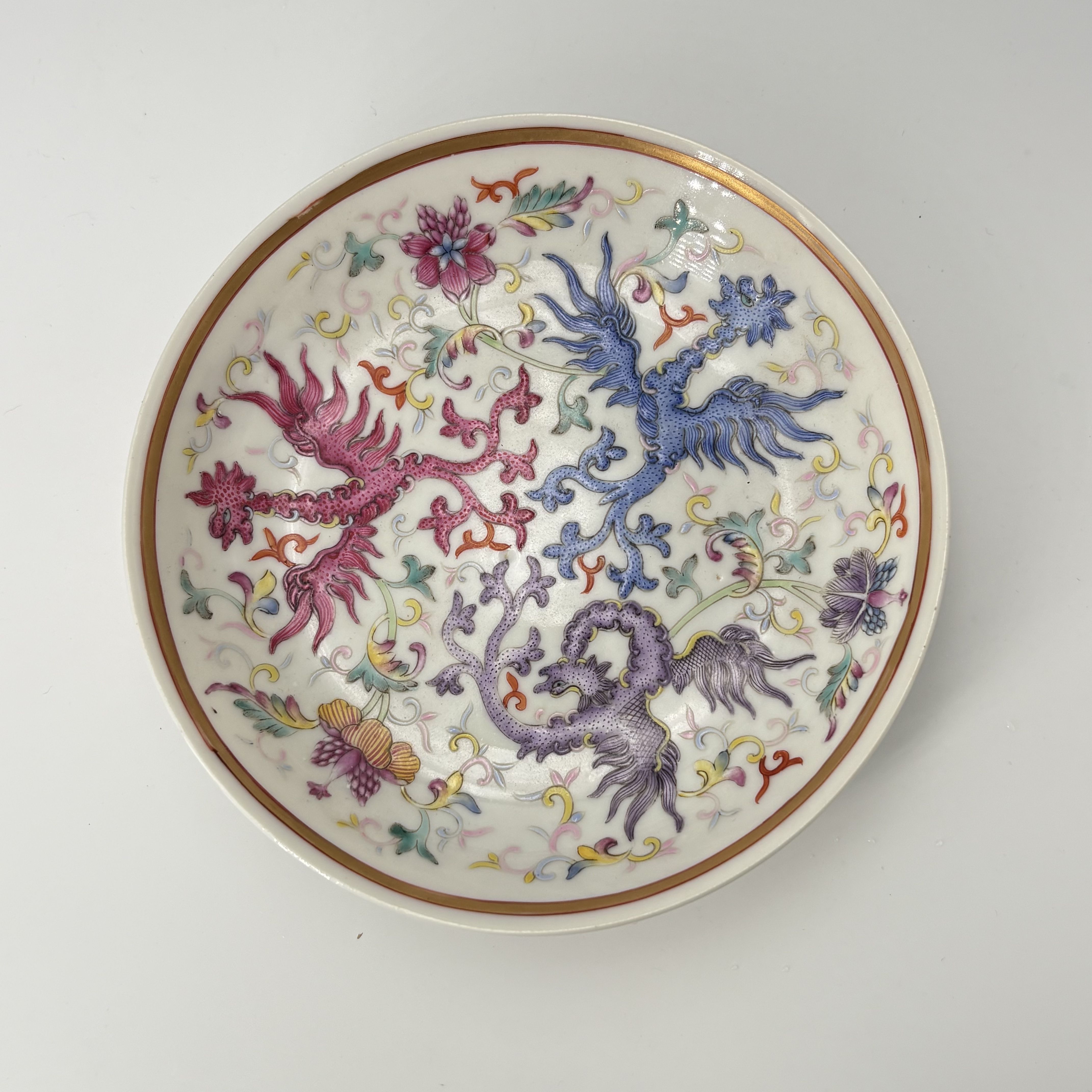 2571 梵红描金双龙戏珠纹赏盘