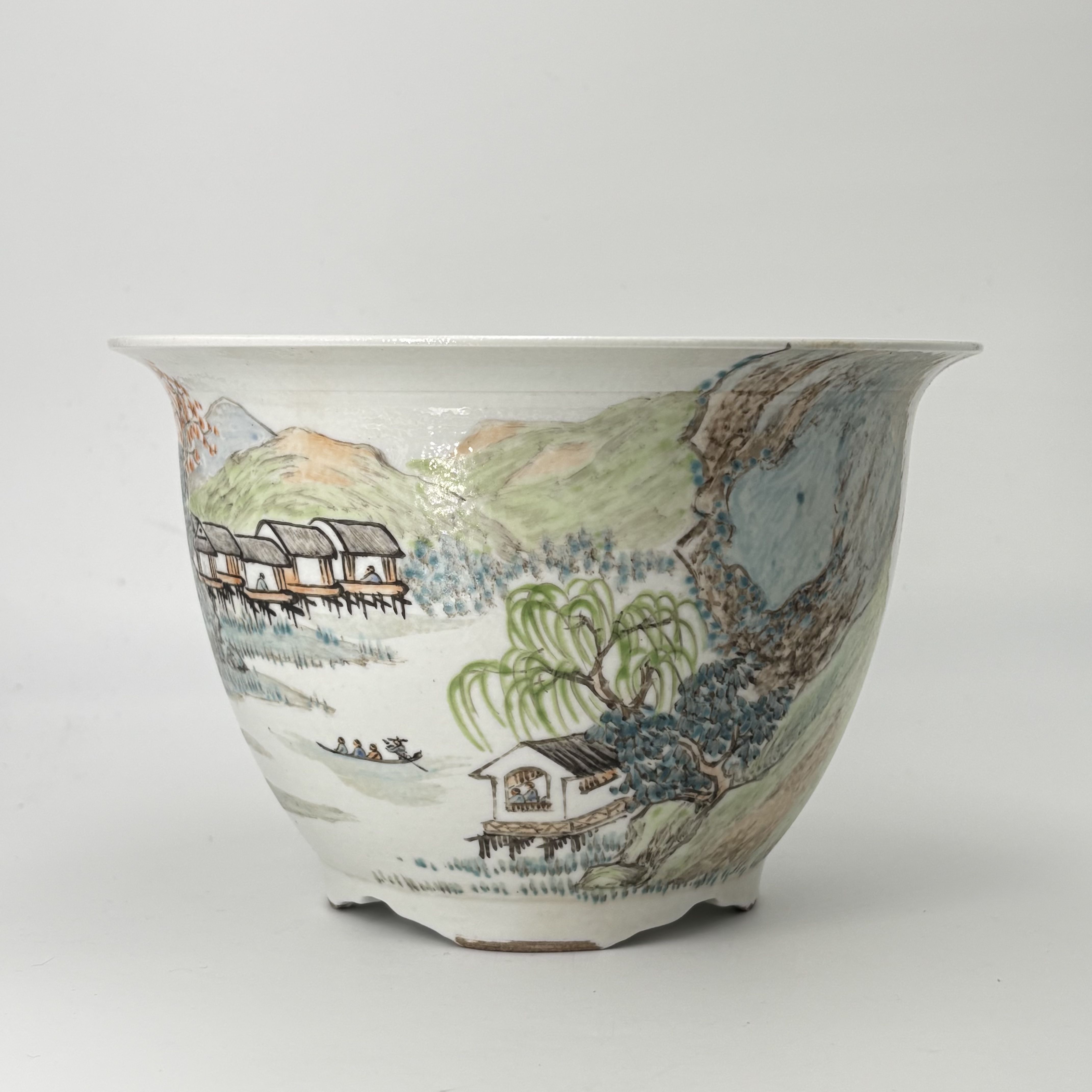 2579 浅降彩山水图文花盆