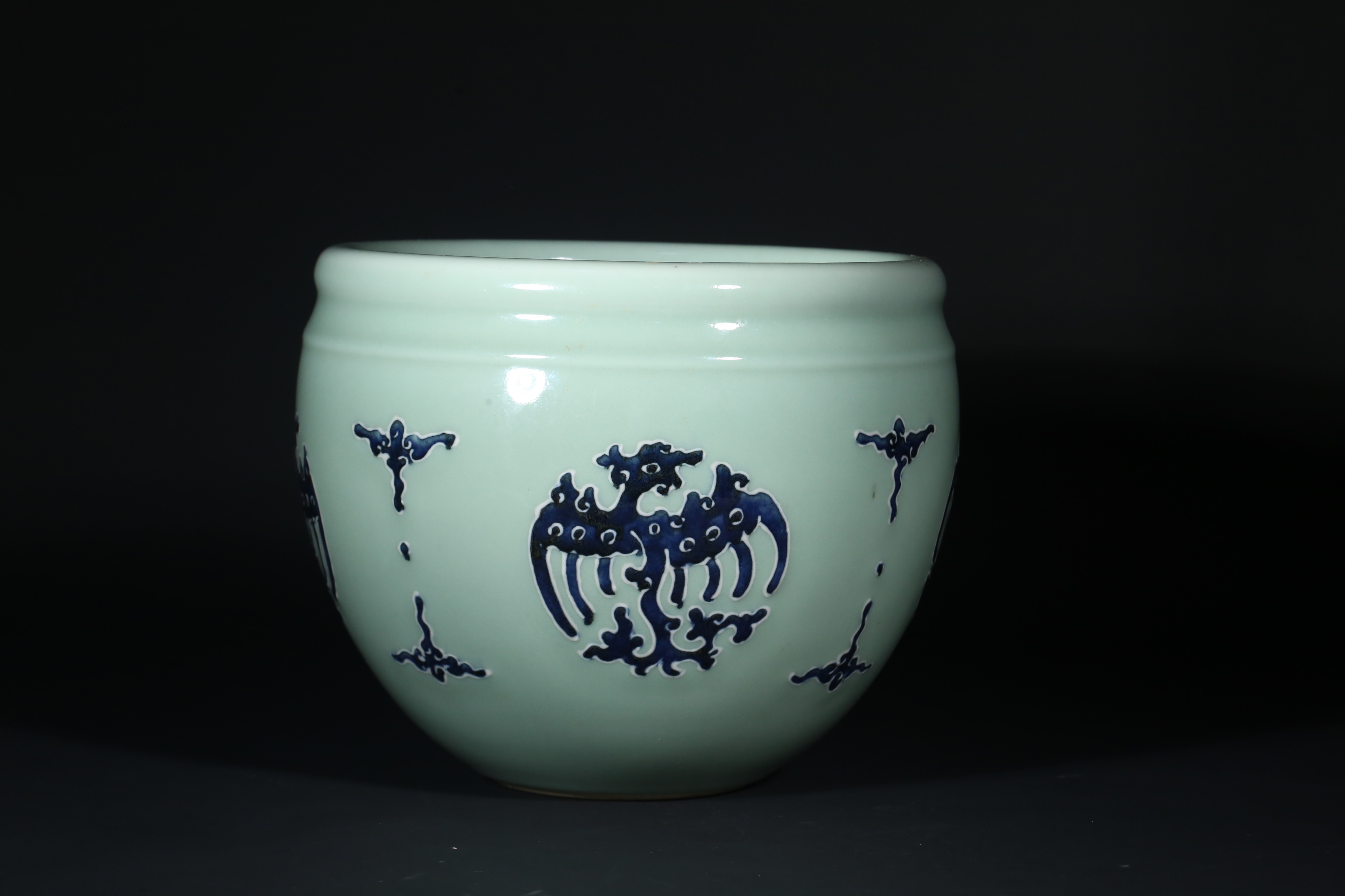 2584 粉青釉加蓝凤纹卷缸