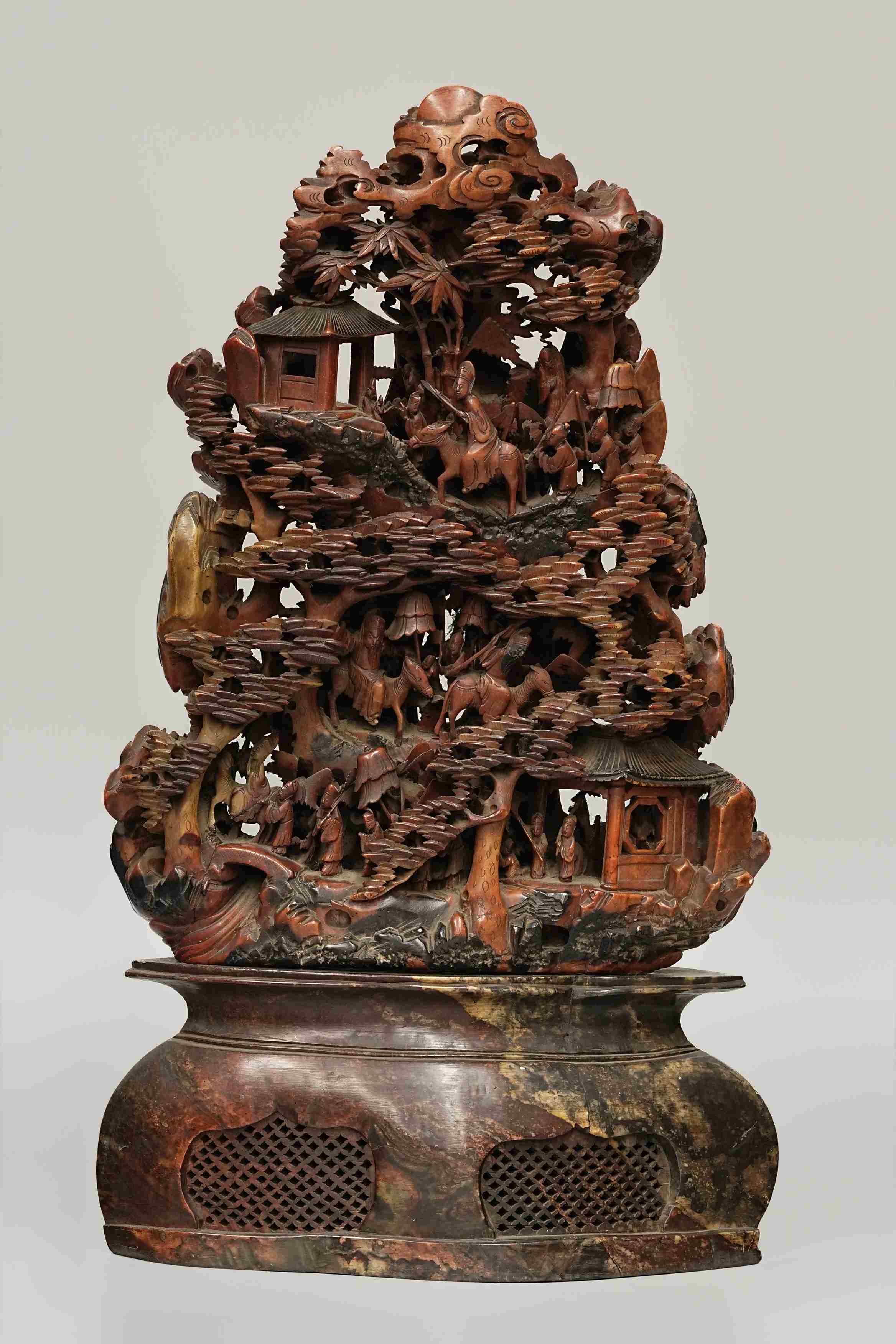 204 清 灵璧石山子摆件 在铭 托附