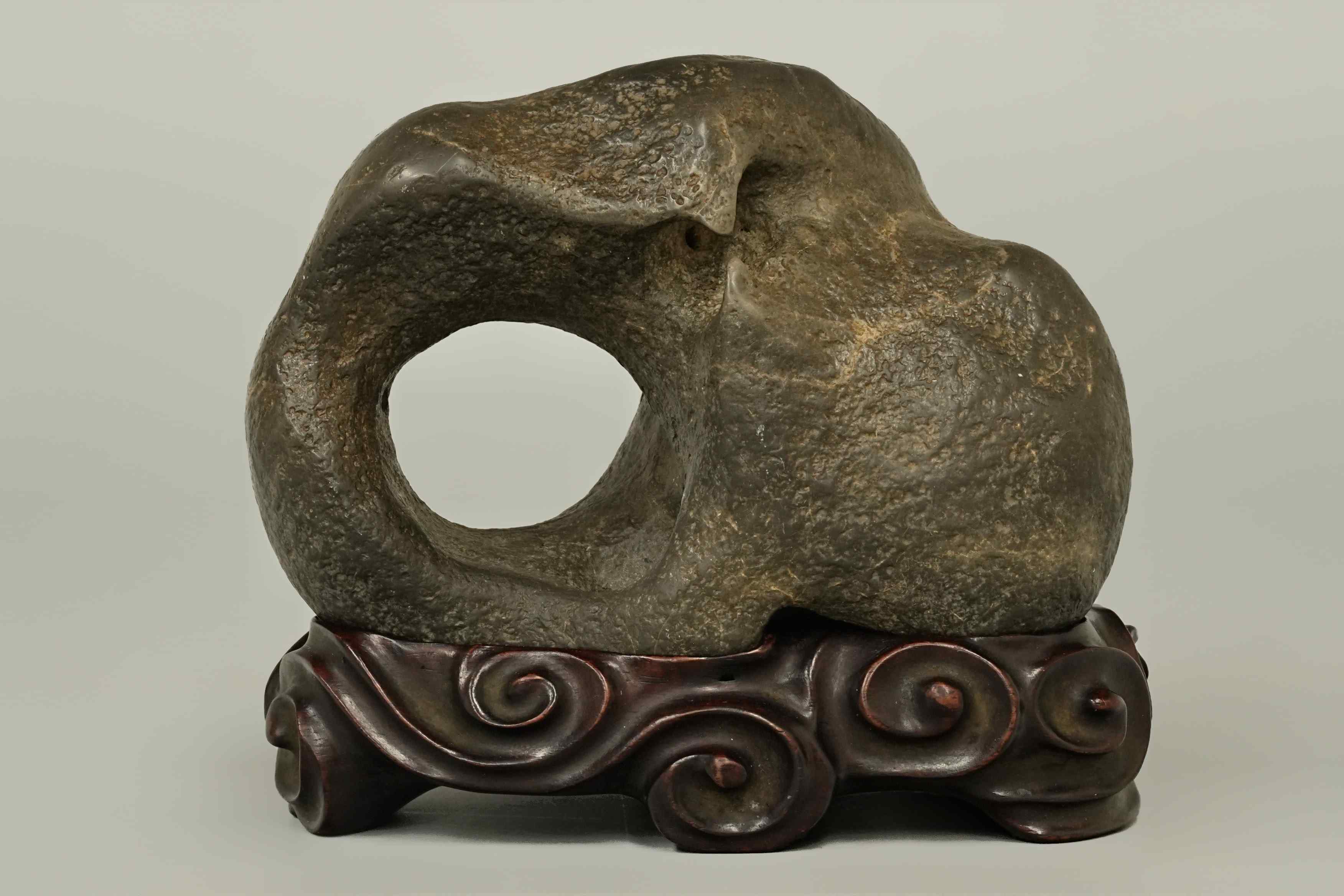 207 明 灵璧石山子摆件 托附 有伤