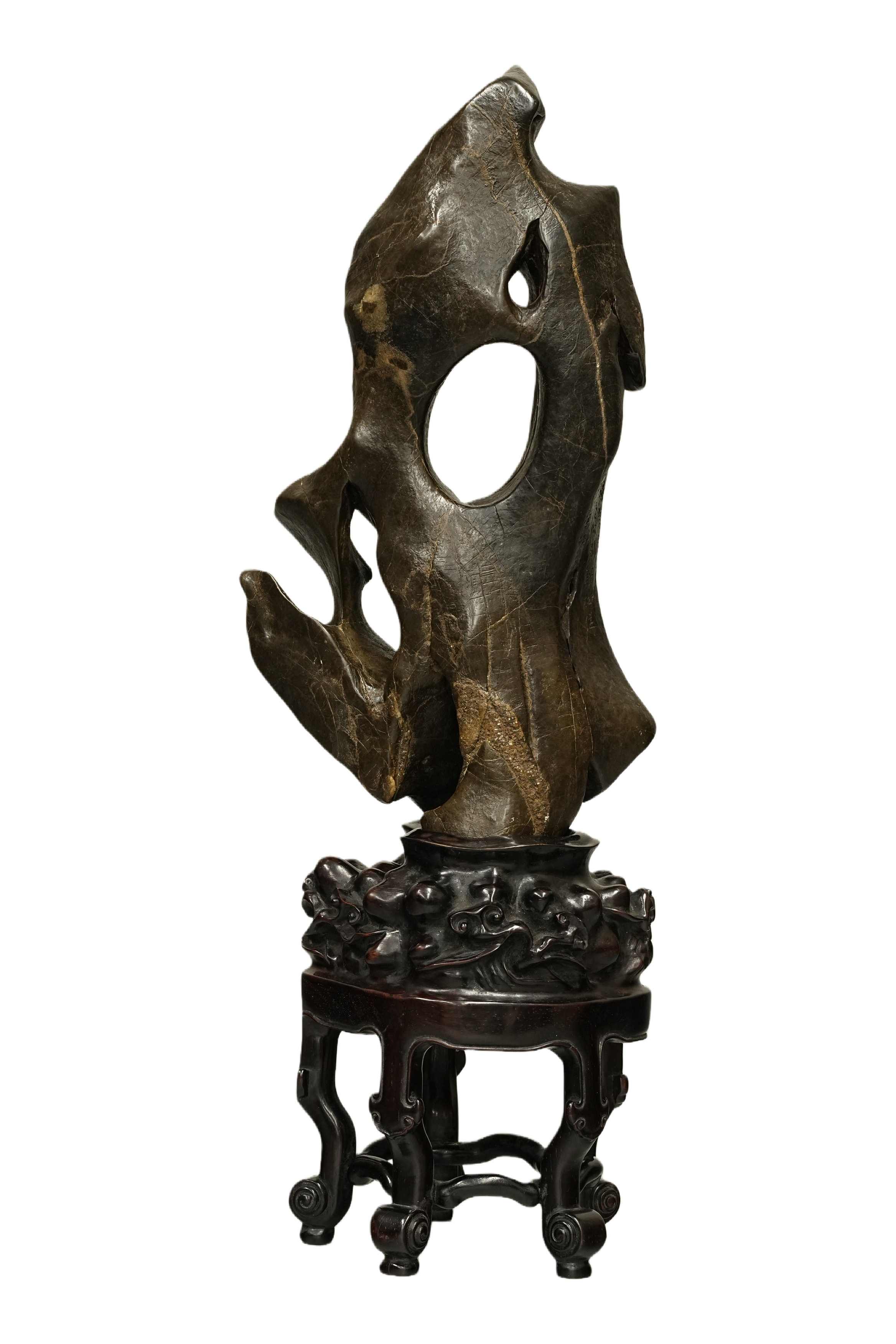 206 清 太湖石摆件 托附 日本桐箱附