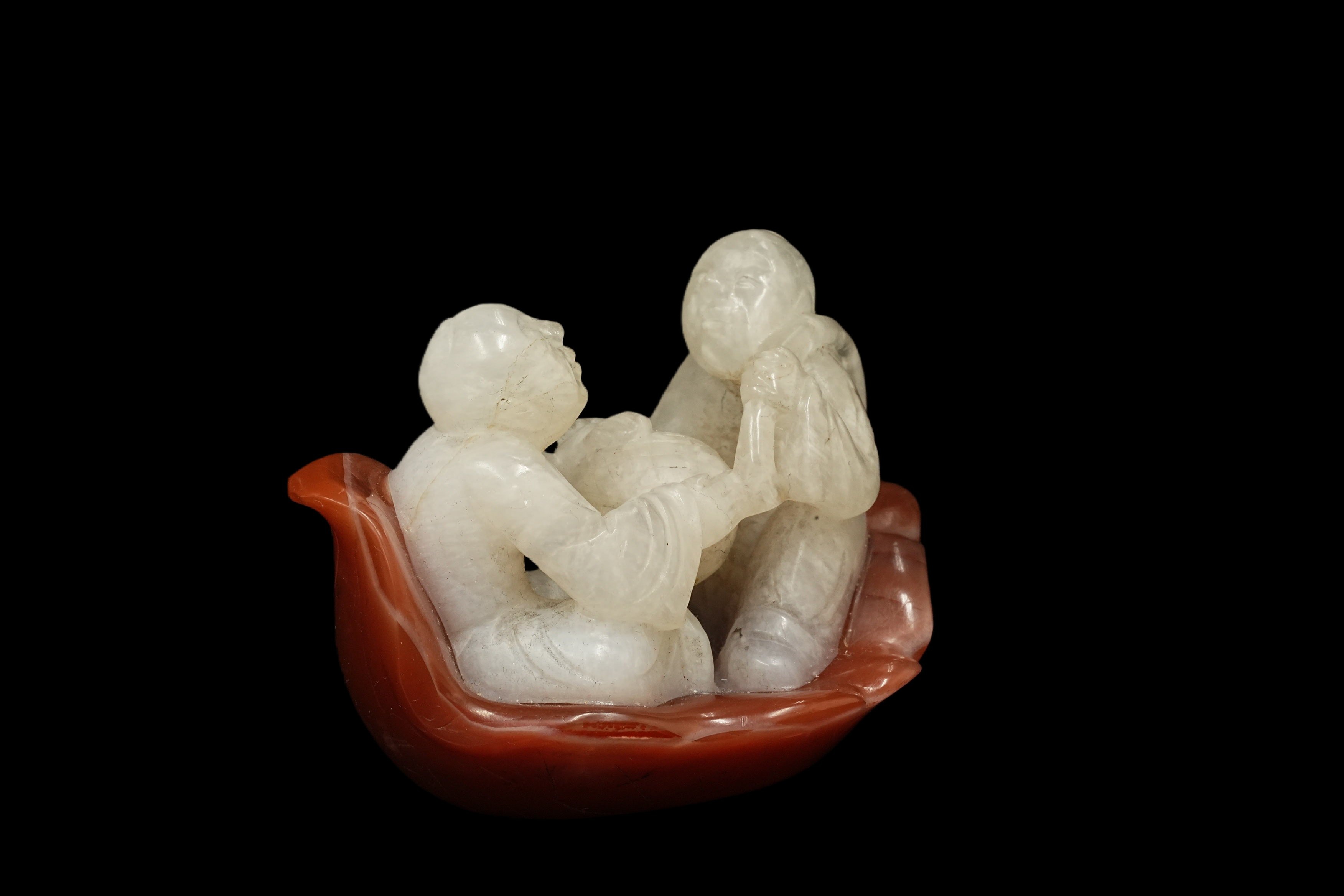 211 清 南红玛瑙舟形人物摆件